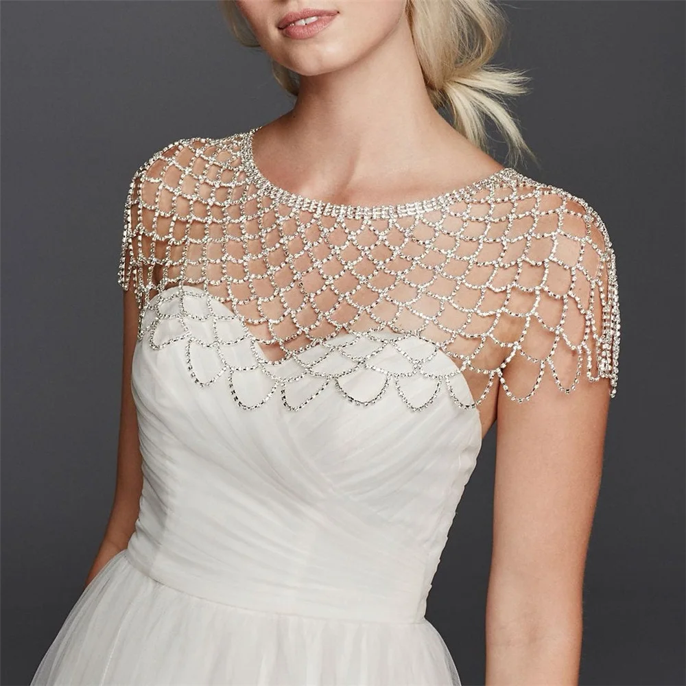 Women's Rhinestone Body Chains Shawl Fashion Shoulder Necklaces Sexy Tops Chain Wedding Dress Shining Shawl Body Jewelry