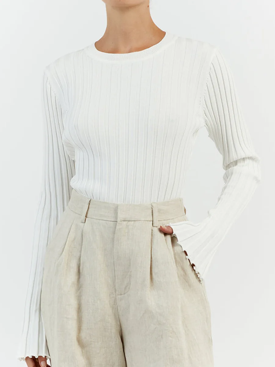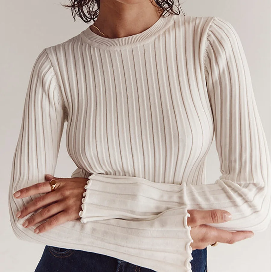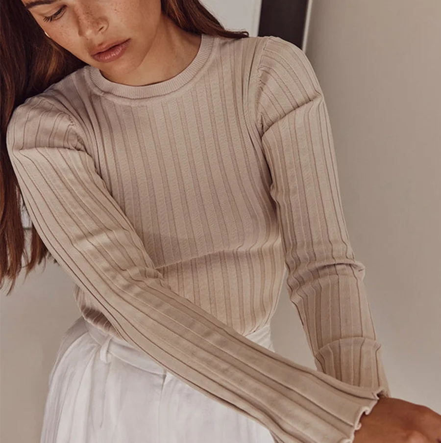 O Neck Sweaters for Women's Sweater Pullovers Solid Ribbed Jumper Jersey Blouse Autumn Winter Knit Tops Korean Y2k Knitwear 2654