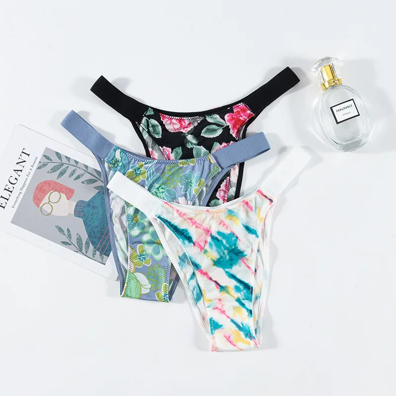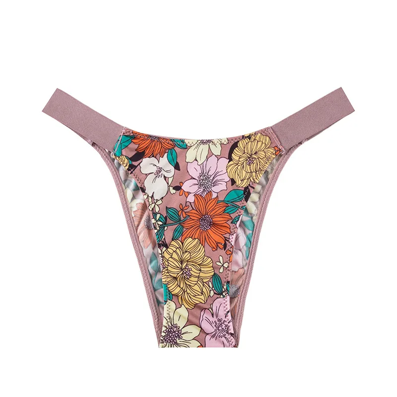 Women's Panties Thong Low Waist Sexy Secret Floral G-string Lingerie Brief Seamless Panty Women Ice Silk Underwear 0646