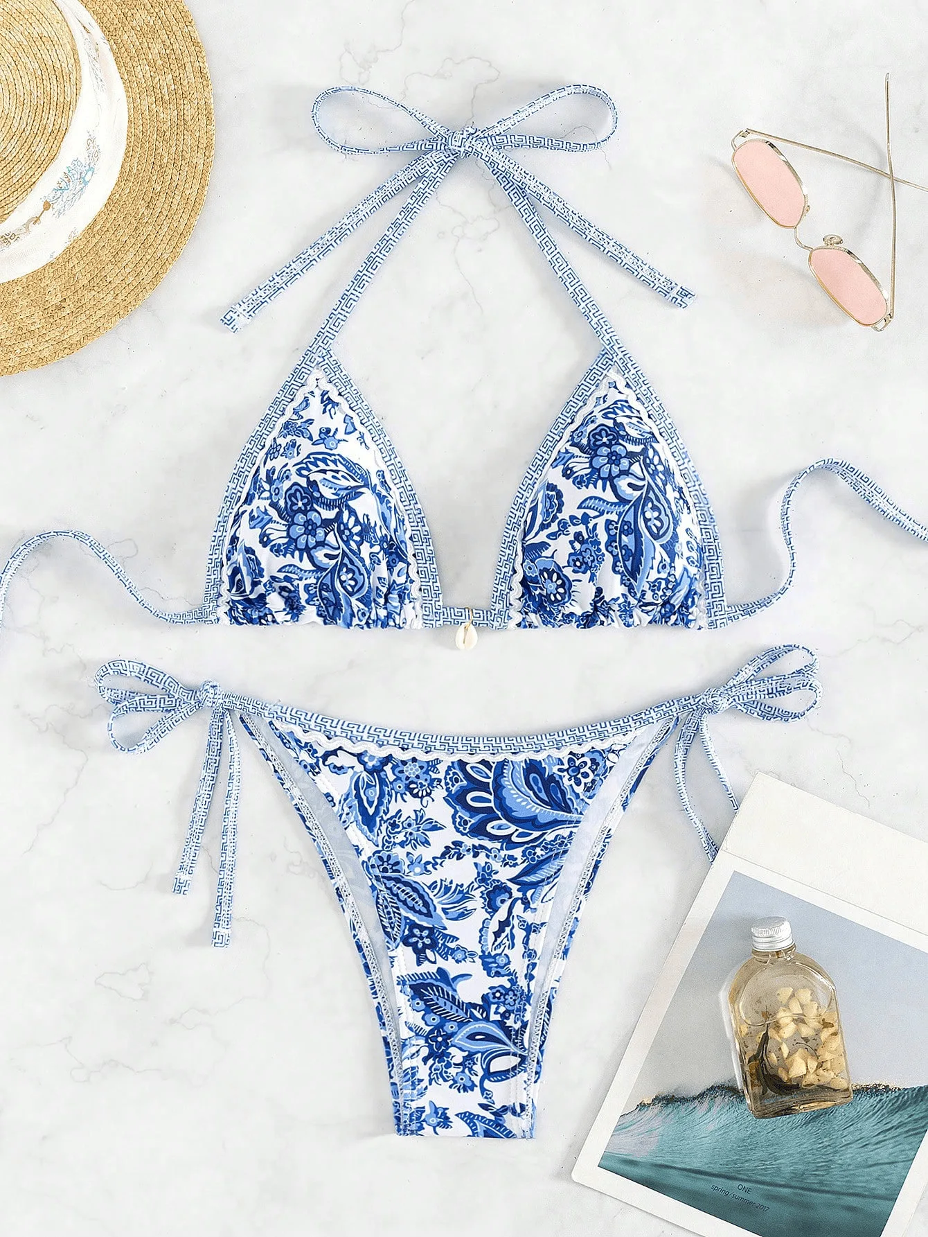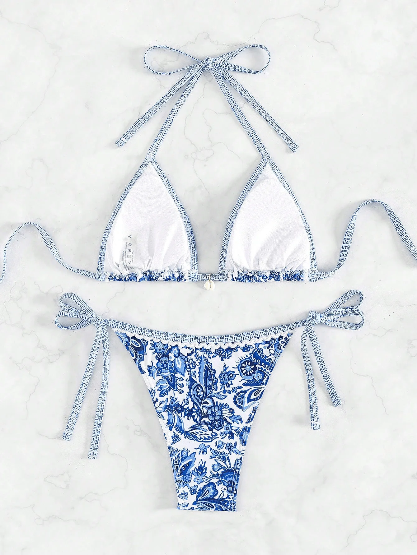 MLY Ruffle Bikini Summer Two Piece Suit Sexy Swimwear Bandage Biquini Triangle Swimsuit Printed Bathsuit