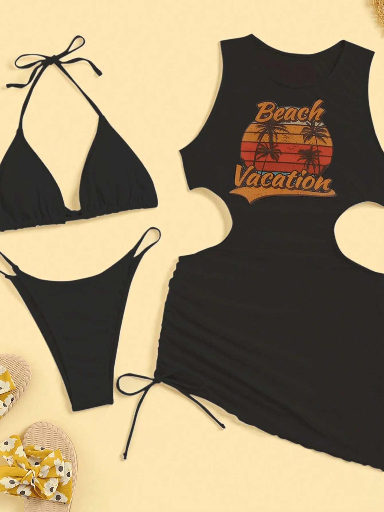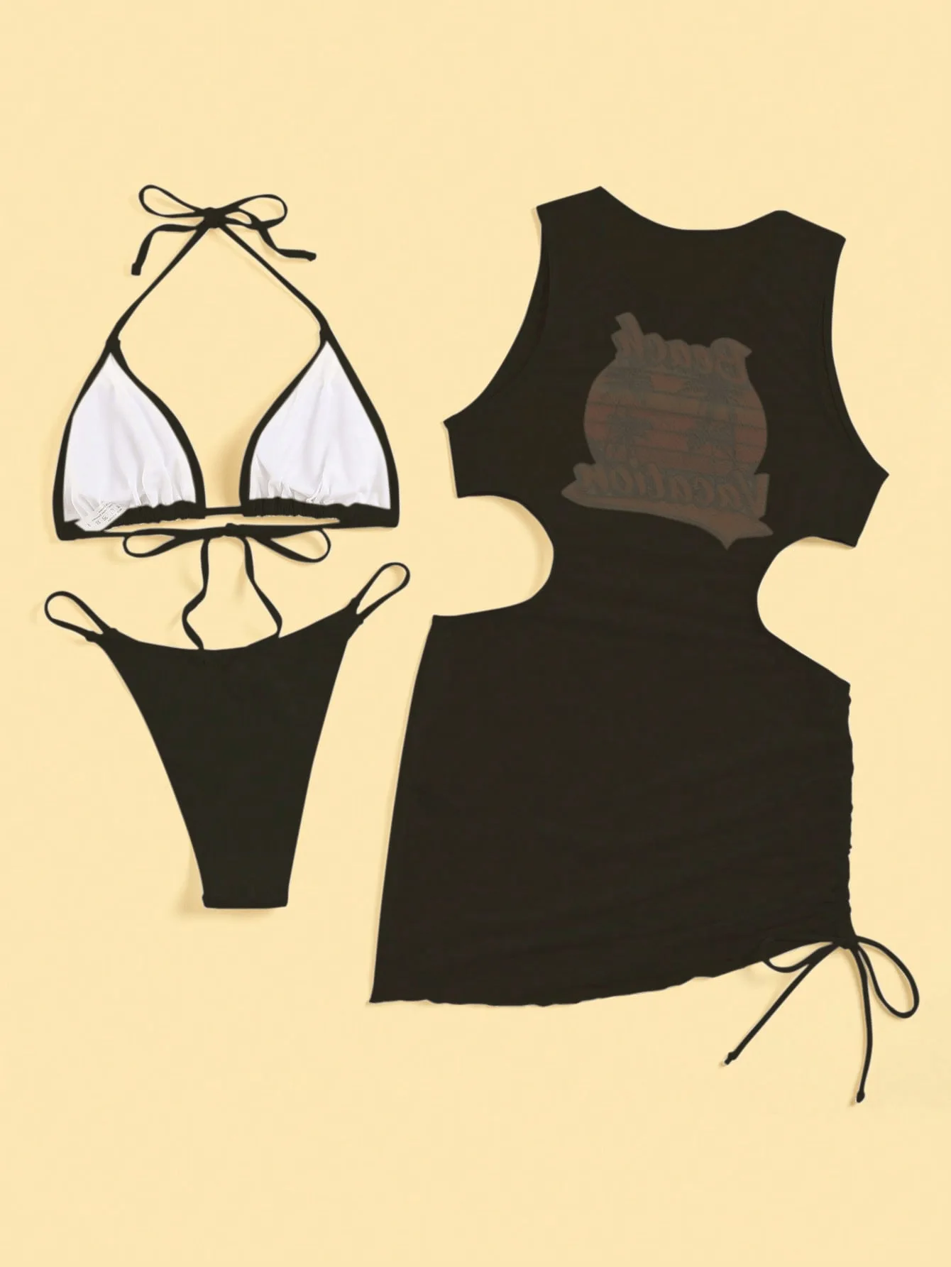 Women'S Bikini Set and Dress Cover up Trend Swimsuits Set Bikini Bathing Three Piece Back Strap High Cut Biquinis Female