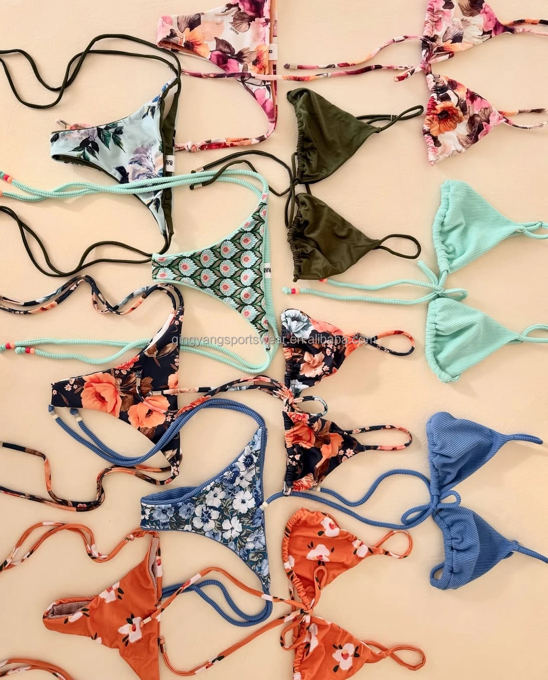 MLY Ruffle Bikini Summer Two Piece Suit Sexy Swimwear Bandage Biquini Triangle Swimsuit Printed Bathsuit