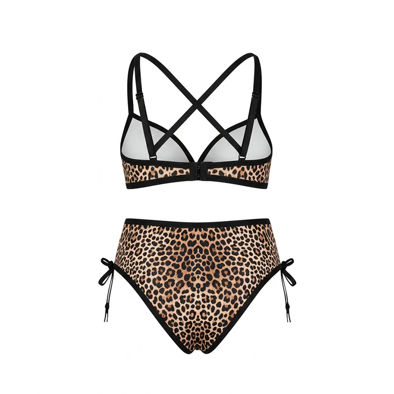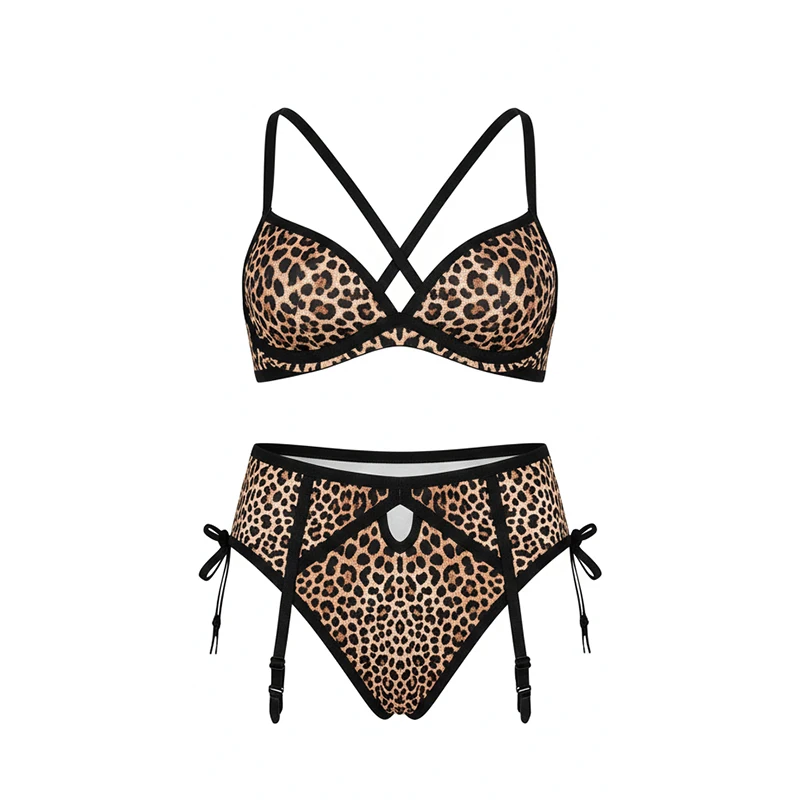 Top Wholesale Lace Bra with Exotic Leopard Print Cross Back Straps Sexy Underwear Women Lingerie for Lady Trendy Lace Bra Set