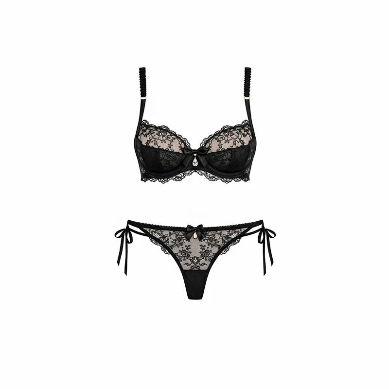 Top Hot Sexy Underwear with Sparkling Tear Drop Crystal Charm Intricate Floral Lace Embroidery Women Lingerie for Sexy Panties