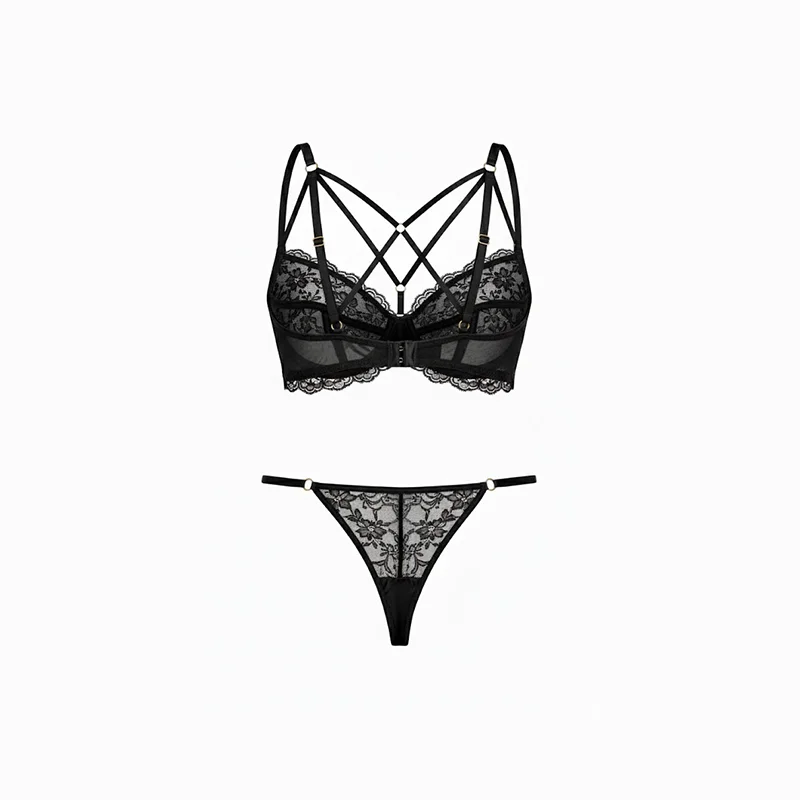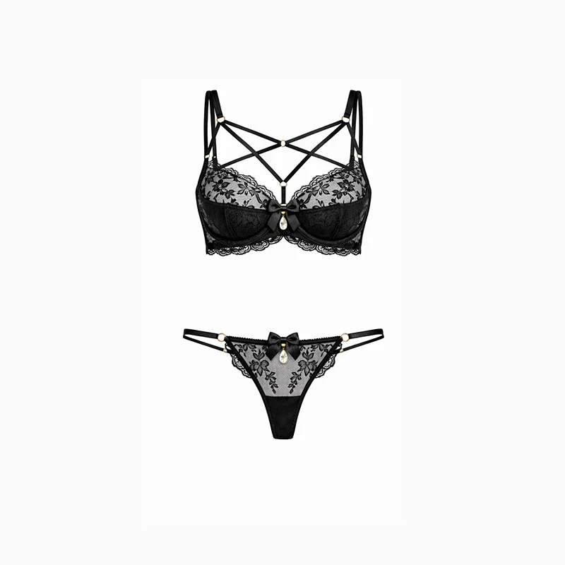 Top Sexy Underwear with Bold Pentagram Style Harness Strappage Exquisite Floral Embroidered Lace Women Lingerie for Sexy Panties