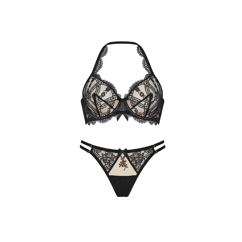 Top Sexy Sexy Underwear with Chic Halter Neck Lace Design Delicate Scalloped Eyelash Trim Women Lingerie for Sexy Panties