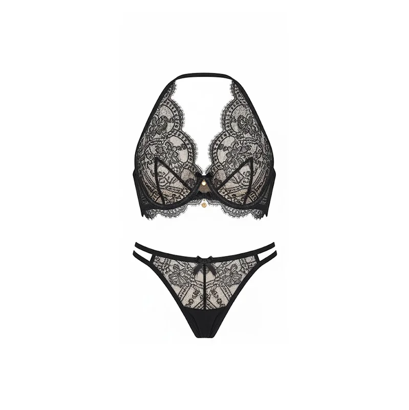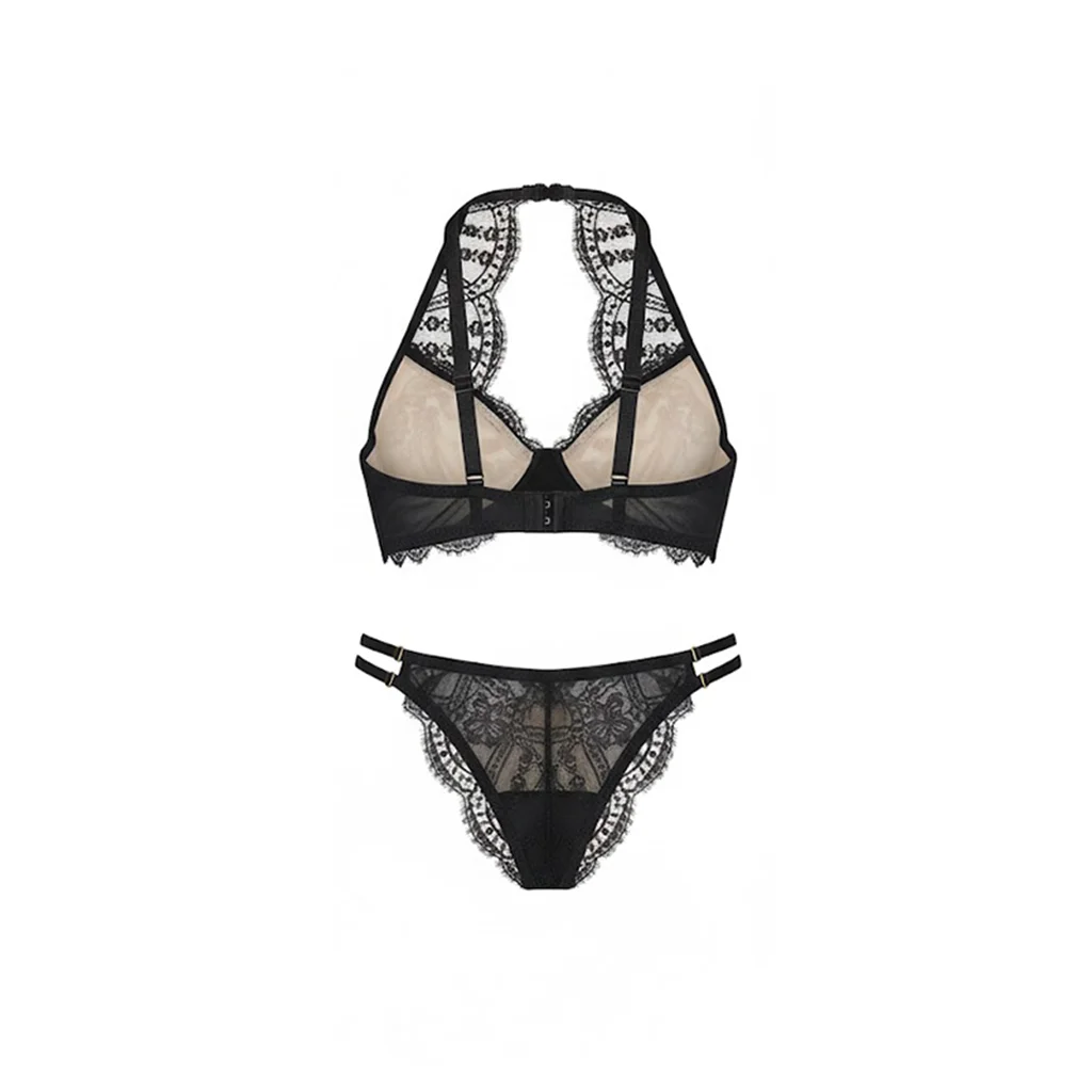 Top Sexy Underwear with Chic Halter Neck Silhouette Design Delicate Scalloped Eyelash Lace Trim Women Lingerie for Sexy Panties
