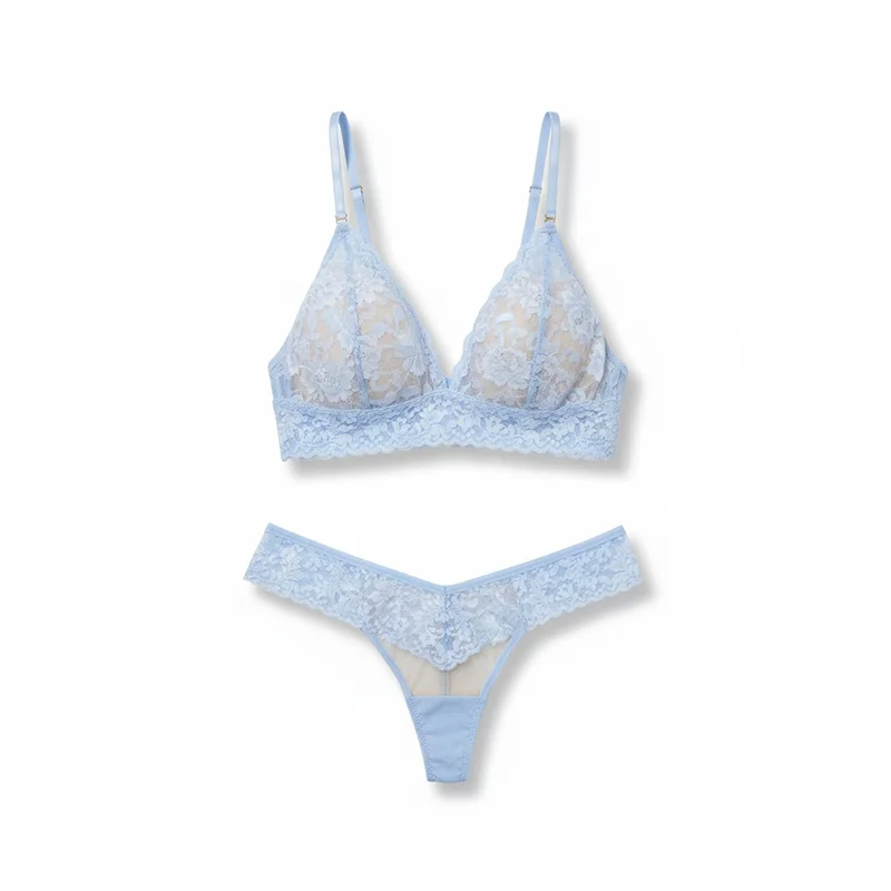 Top Sexy Underwear with Chic Wireless Triangle Bralette Design Delicate Scalloped Floral Lace Women Lingerie for Sexy Panties
