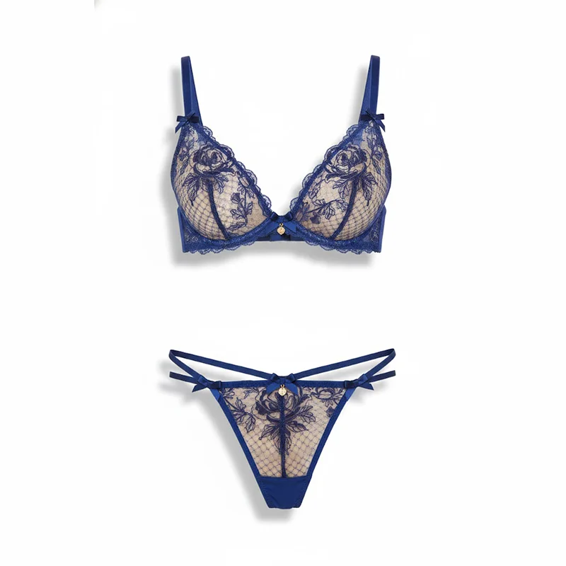 Top Hot Sexy Underwear with Intricate Rose Patterned Embroidery Lace Luxurious Gold Heart Charms Women Lingerie for Sexy Panties