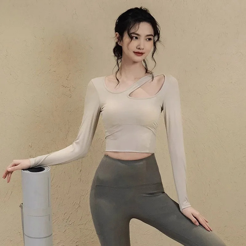 New Women's Fashionable Solid Color High Elasticity Fast Drying Naked Feeling Tight Yoga Long Sleeved Top
