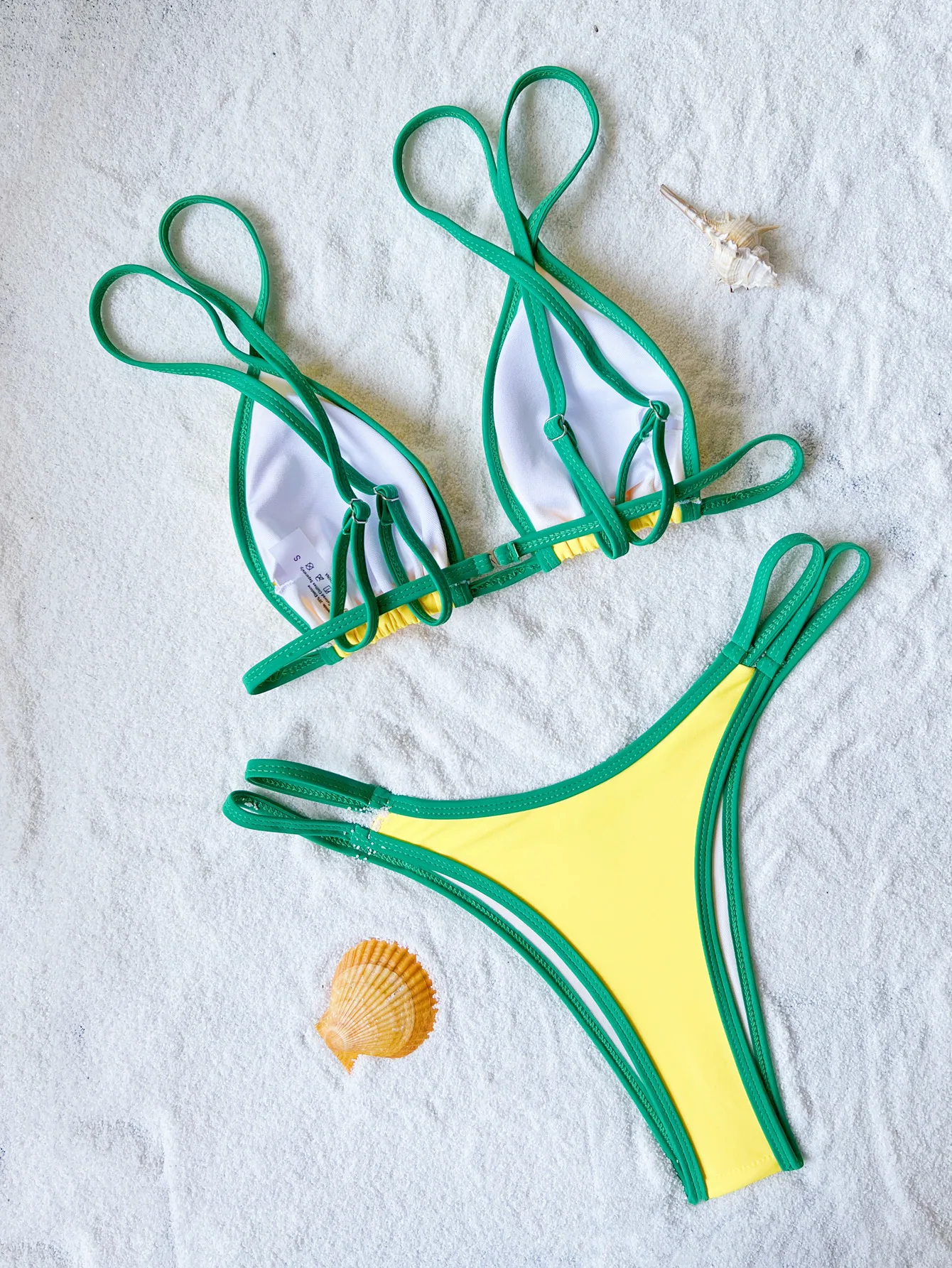 New Solid Color Two-piece Swimsuit Bikini with Contrast Binding