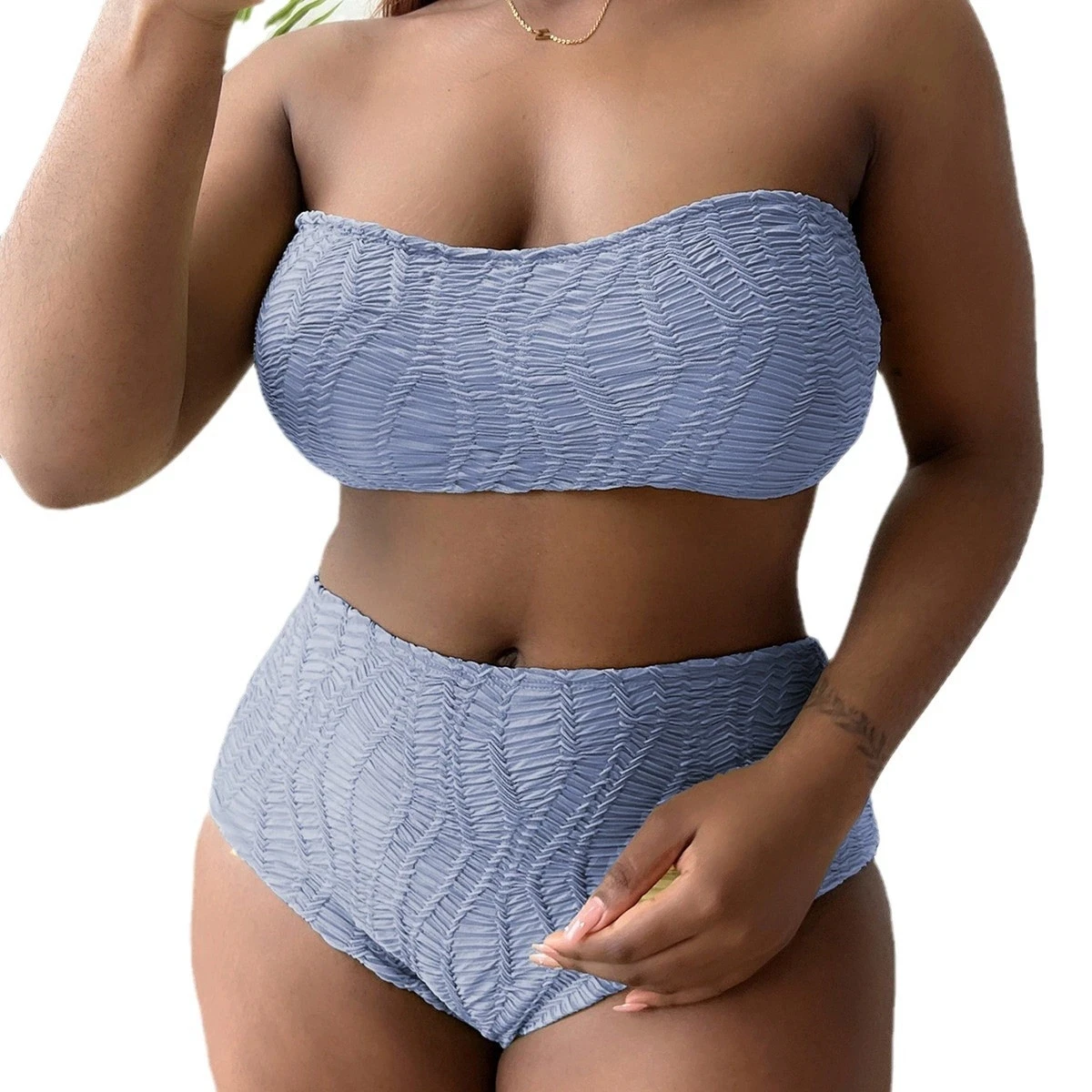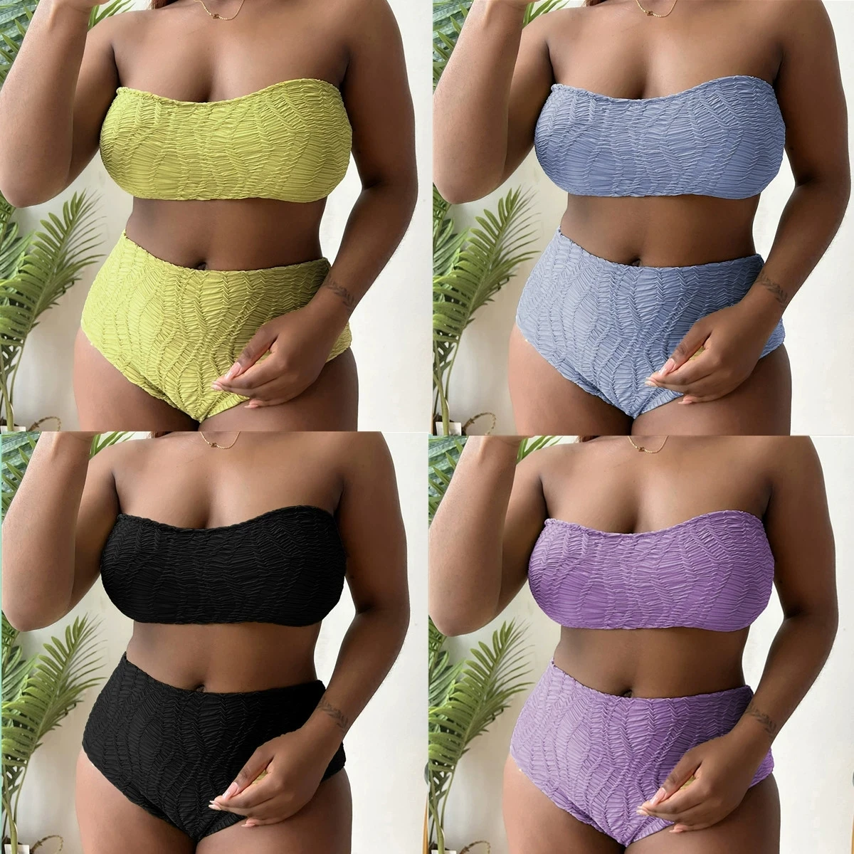 NEW Sexy Plus Size Solid Color Prints Two Piece Set Bikini Set Tube Top for Woman
