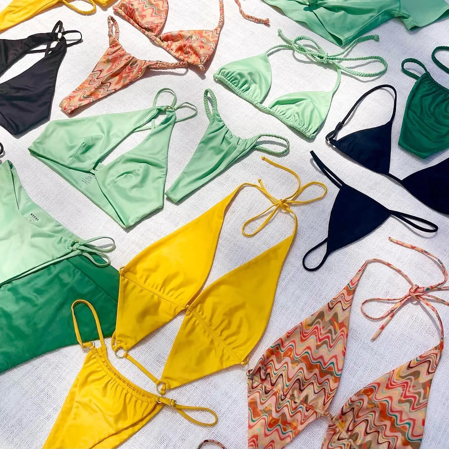 OEM Manufacturer High Quality Swimsuit Custom Factory Wholesale Women Halter&Lace up Printed Green Satin Bikini Swimwear