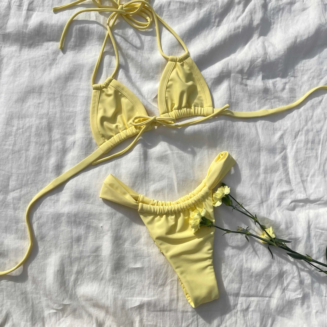 MLY Ruffle Bikini Summer Two Piece Suit Sexy Swimwear Bandage Biquini Triangle Swimsuit Printed Bathsuit