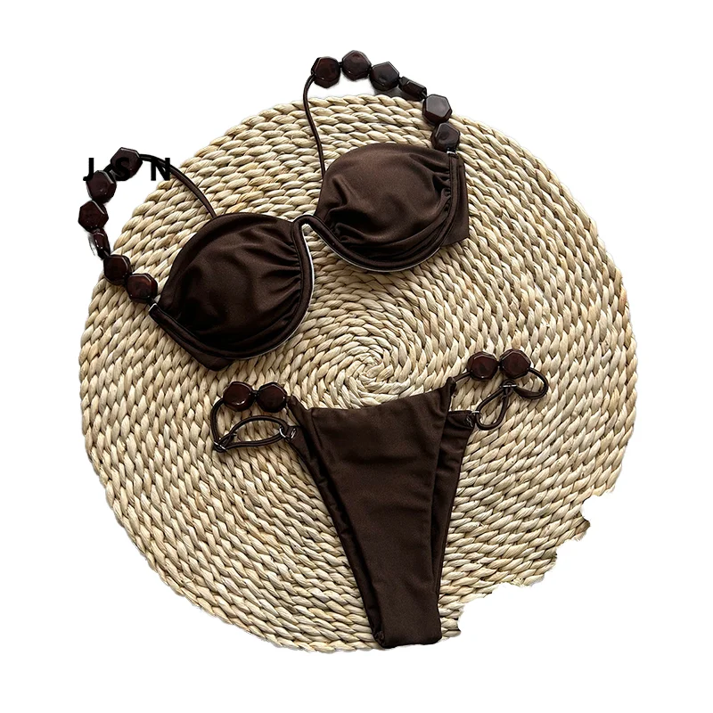 Customized Women's Sexy Beachwear Bikini Sets Plus Size High Cut Thongs with Animal Print and Tie Briefs with Fabric Features