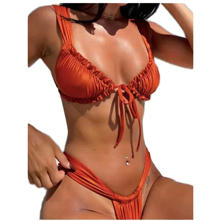 MLY Ruffle Bikini Summer Two Piece Suit Sexy Swimwear Bandage Biquini Triangle Swimsuit Printed Bathsuit