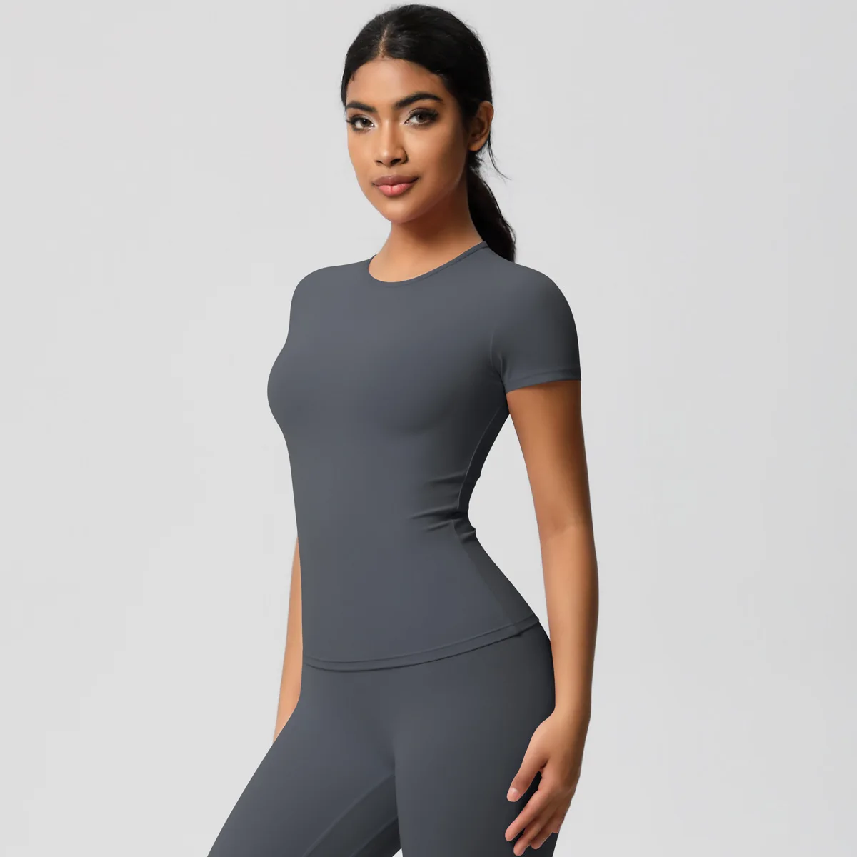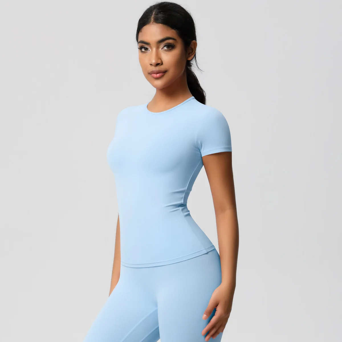 Women Short Sleeve 80% Nylon 20% Spandex Shirts High Quality Soft Daily Wear Crop Top T Shirt