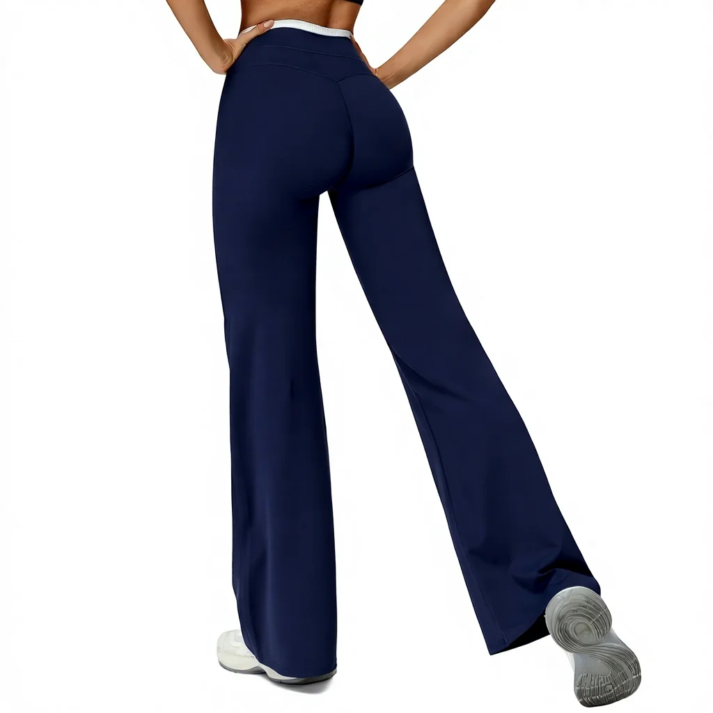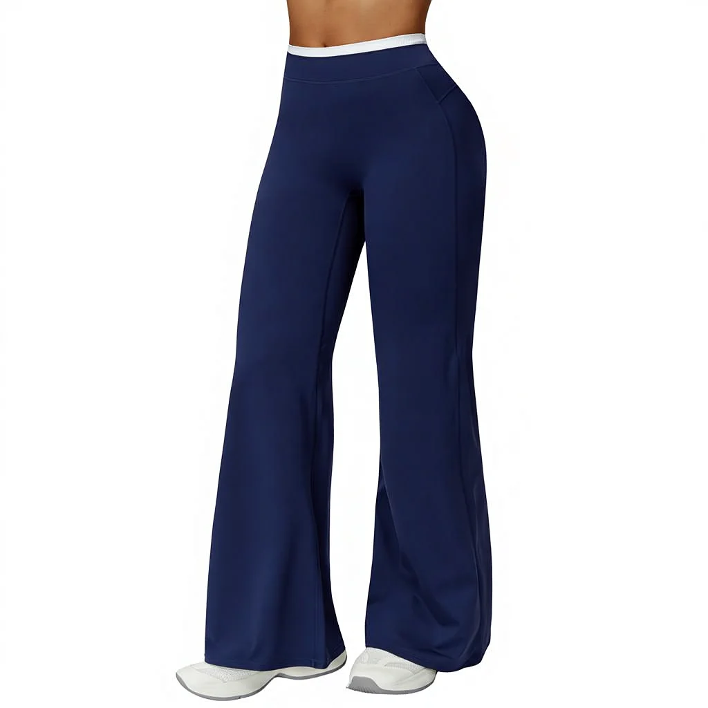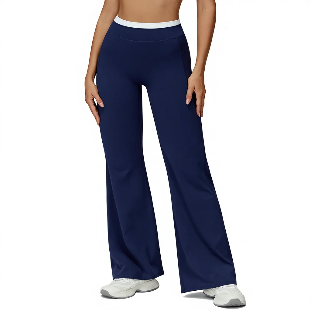 Cross-border Color-contrast Naked Trousers Regular Boot Cut Two-piece High-waist Casual Vintage Micro-sportwork Fitness