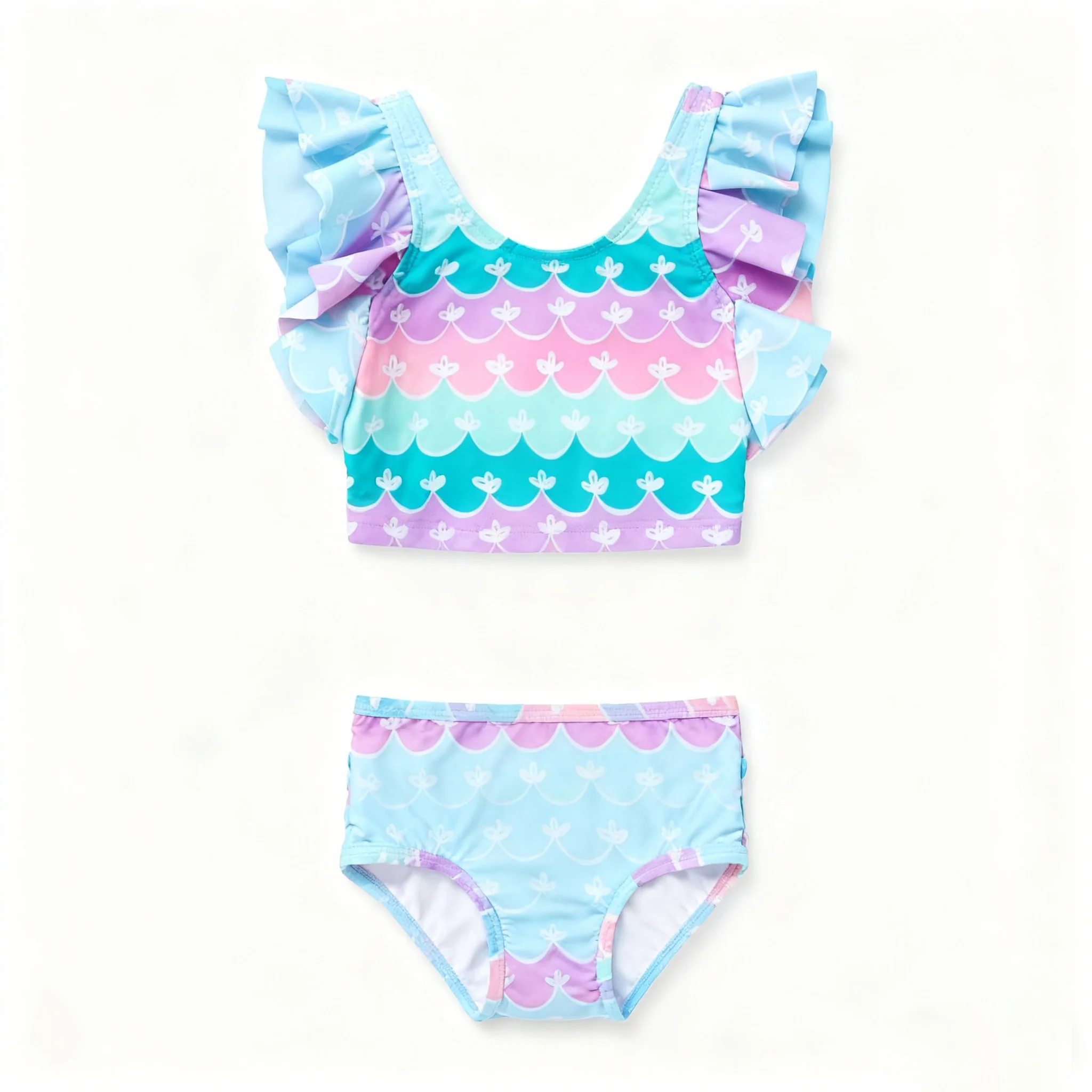 Custom OEM Children's Swimwear Baby Girls' Burkini Two-Piece Eco-Friendly Breathable Soft Spandex/Polyester Beachwear Child