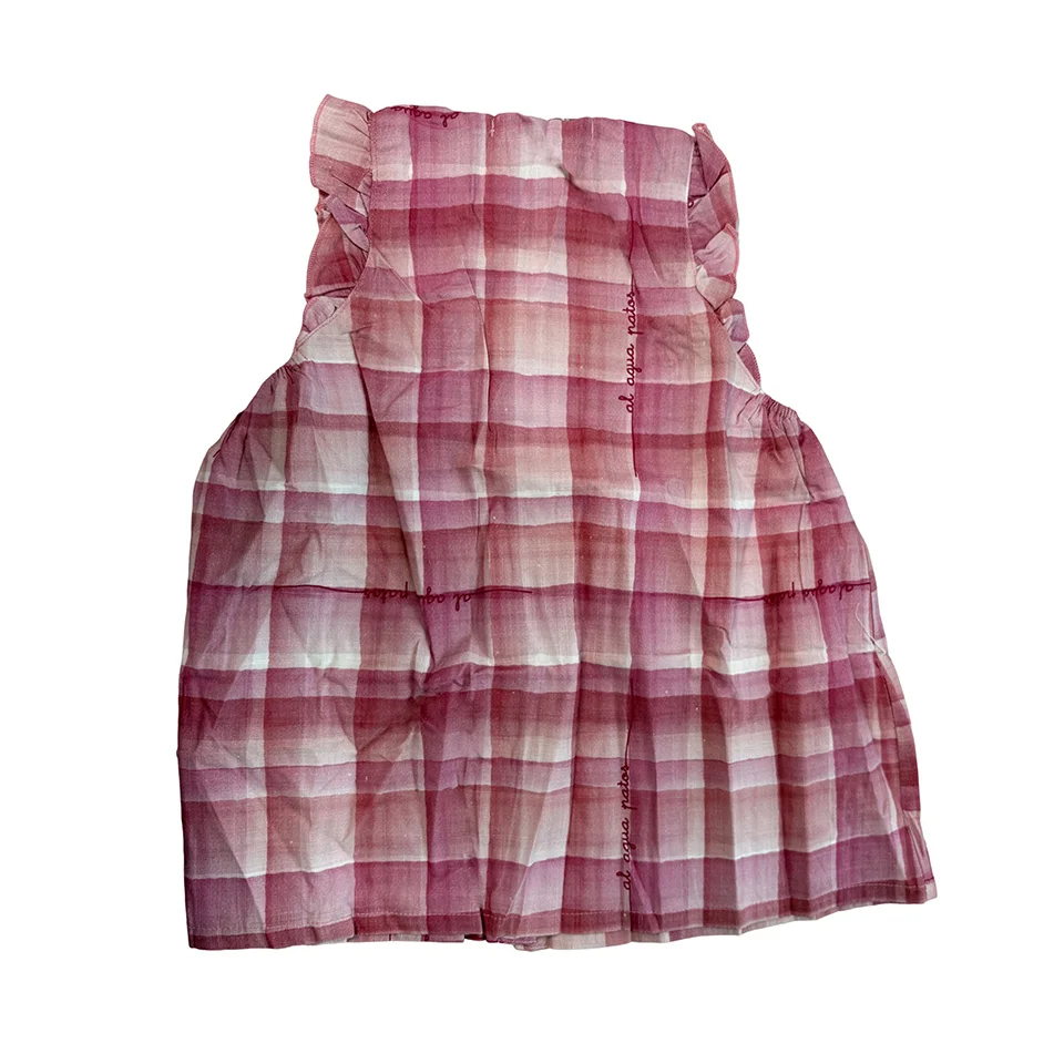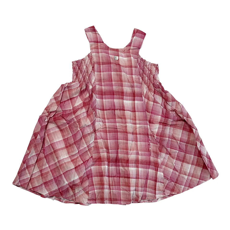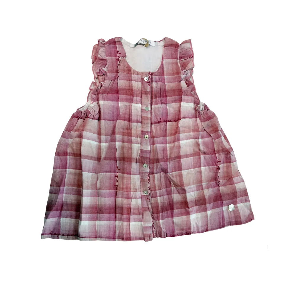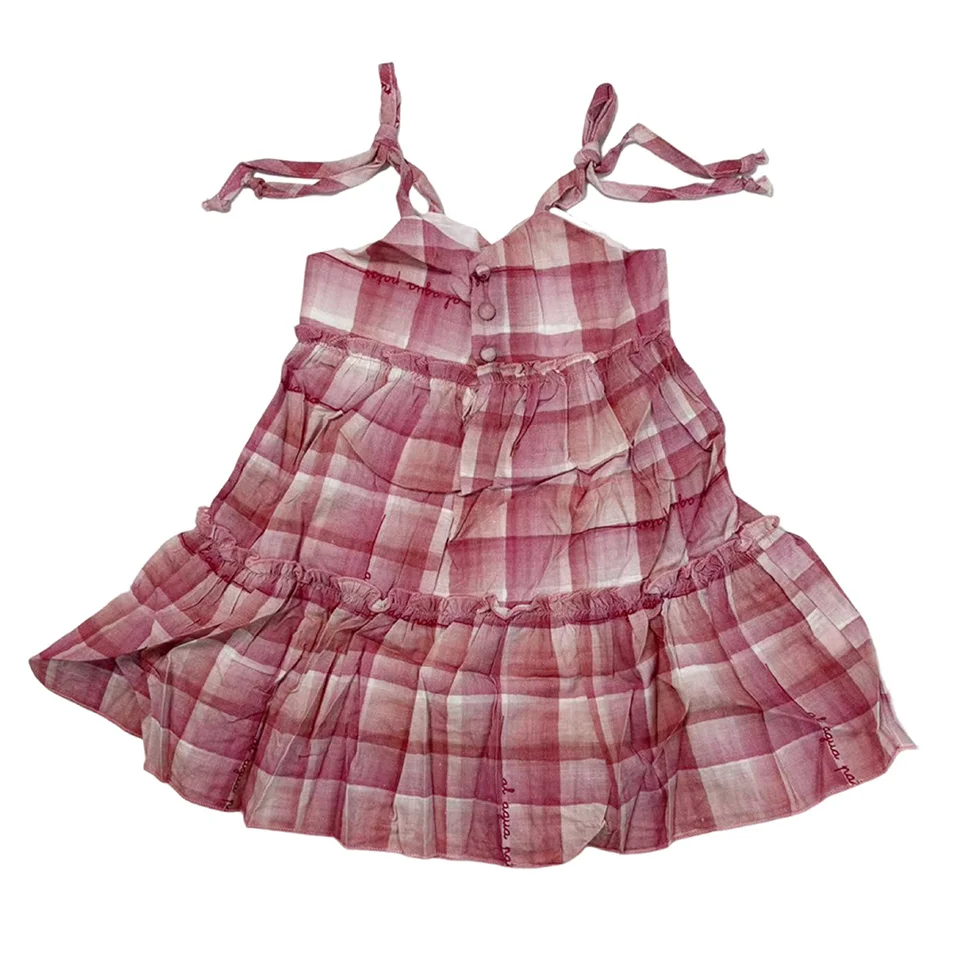 Kids Clothes Wrinkled Cotton Plaid Printing Petal Sleeveless Ruffles Baby Girl Dresses Factory Low Price Children Dress