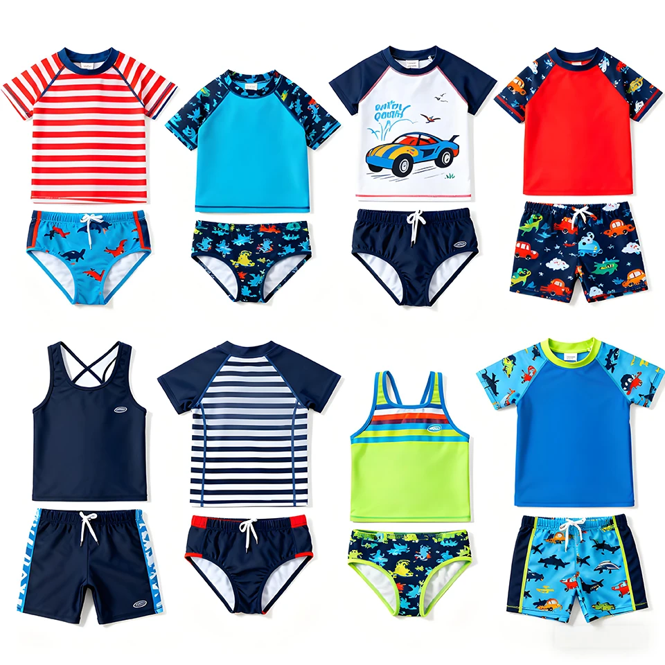 OEKO TEX Custom Eco Friendly Kids UV Swimwear Baby Bathing Suit Printed Children Swim Set Girl Boys 2 Piece Swimsuits for Beach