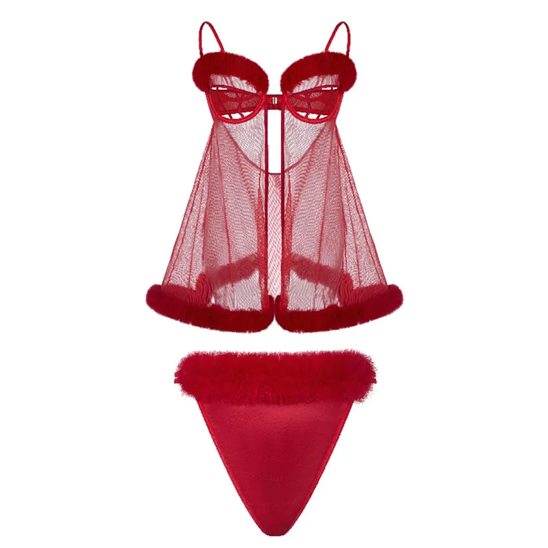 Wholesale New Women's Sexy High-Rise Lingerie Pajamas Lace Bra Brief Set Underwire Support