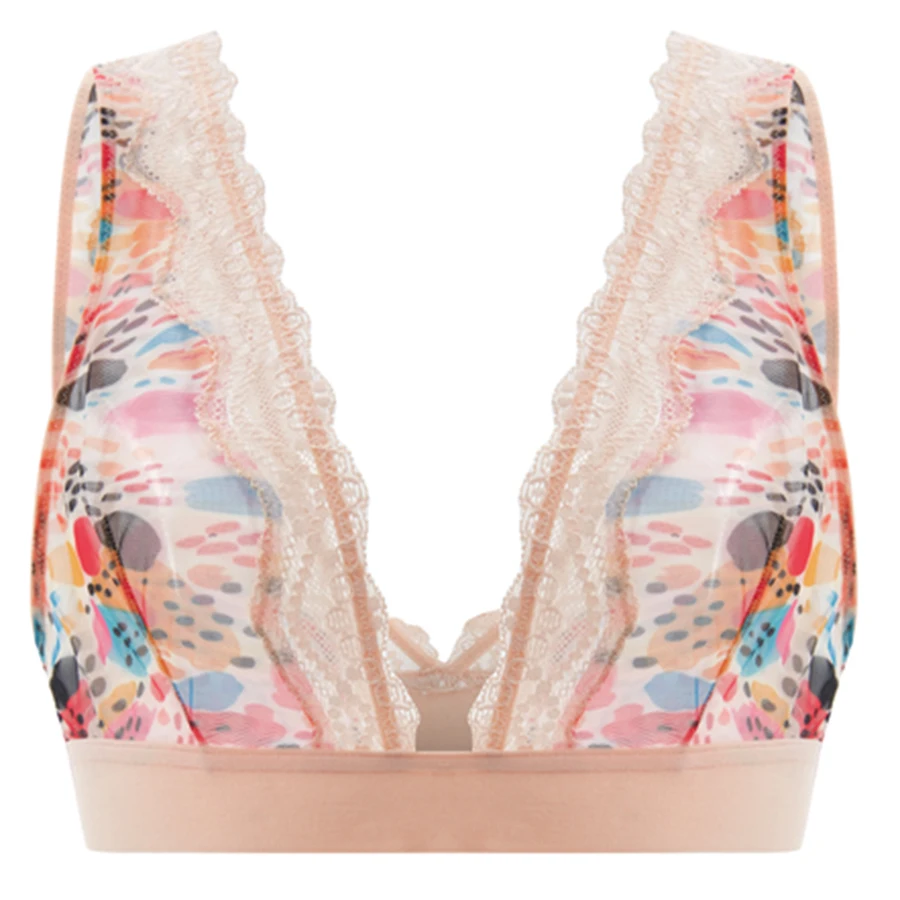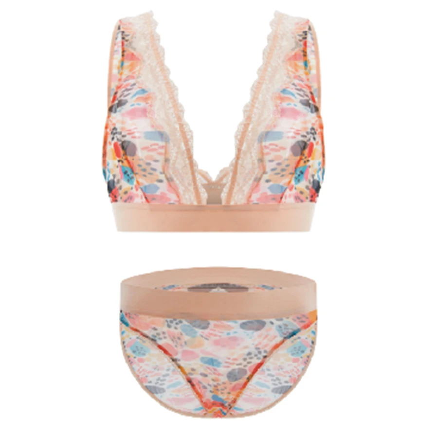New Design High-Rise Wire Free Skin Friendly Soft Print Plus Size Lace Sexy Bra and Panty for Young Women