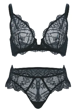 Luxury High-Rise Wire Free V Neckline Stretch Comfortable Skin Friendly Black Lace Full Sexy Mature Lingerie Sets