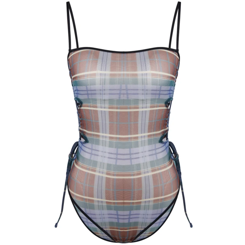 MLY Factory Wholesale Bikini Custom Sexy Bodysuit Jumpsuit Beachwear Backless Striped Print One Piece Swimwear