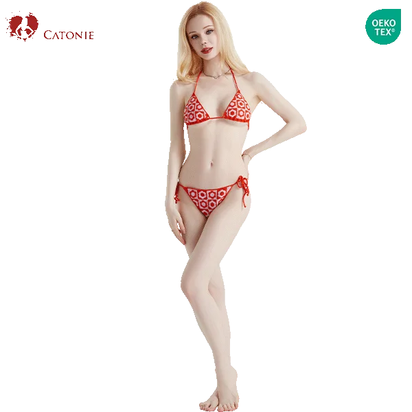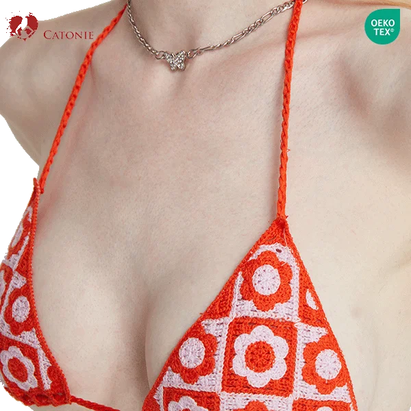 2026 Women's Plaid Sexy Micro Bikini Set Triangle Beachwear Swimwear 2Pc Swimsuit Knitted Geometric Bikini