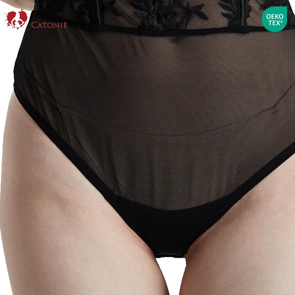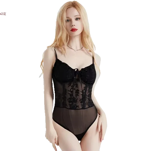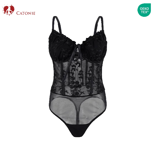 Black Lace Embroidery Jumpsuit Set Hot Selling Soft Comfortable V Neck Halter Transparent Women's Sexy Underwear