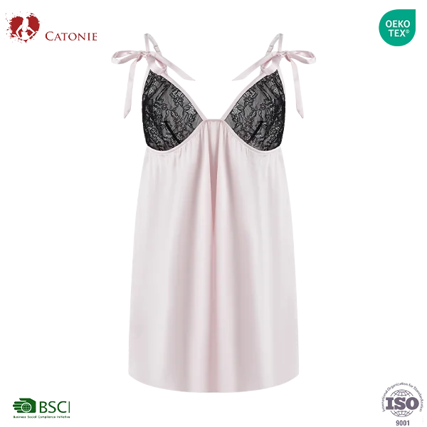 Women's Pyjamas Dress Sexy Bachelorette Sheer Lace Wireless Adjustable Single Shoulder Strap Camisole Nightdress