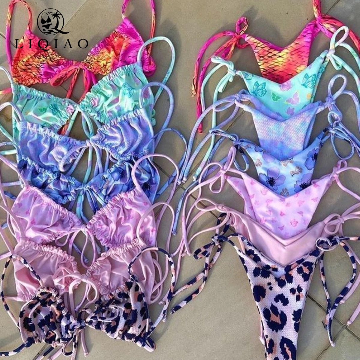MLY Ruffle Bikini Summer Two Piece Suit Sexy Swimwear Bandage Biquini Triangle Swimsuit Printed Bathsuit