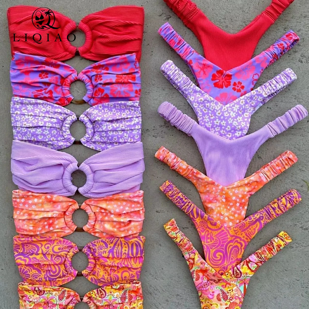 MLY Ruffle Bikini Summer Two Piece Suit Sexy Swimwear Bandage Biquini Triangle Swimsuit Printed Bathsuit