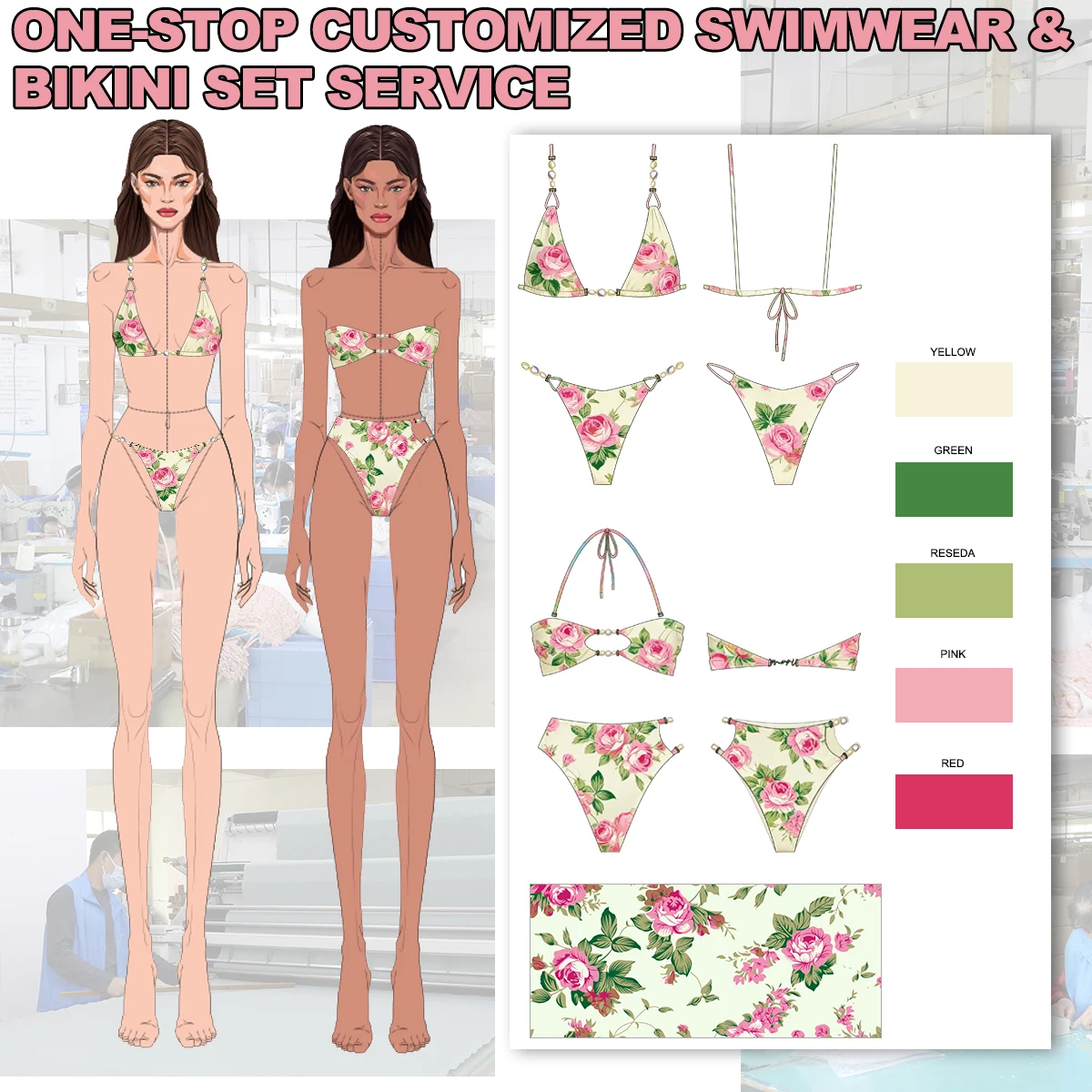 Rose Moulded Brazilian Bikini Women Sexy Bikini Swimwear Latest Style Beach Dress