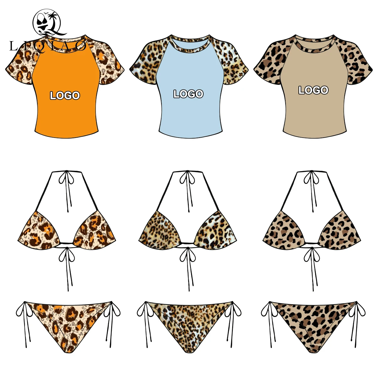 Customized Women's 3-Piece Bikini Sets with Thongs Short Sleeve Tops Spandex/Nylon Material ODM Service