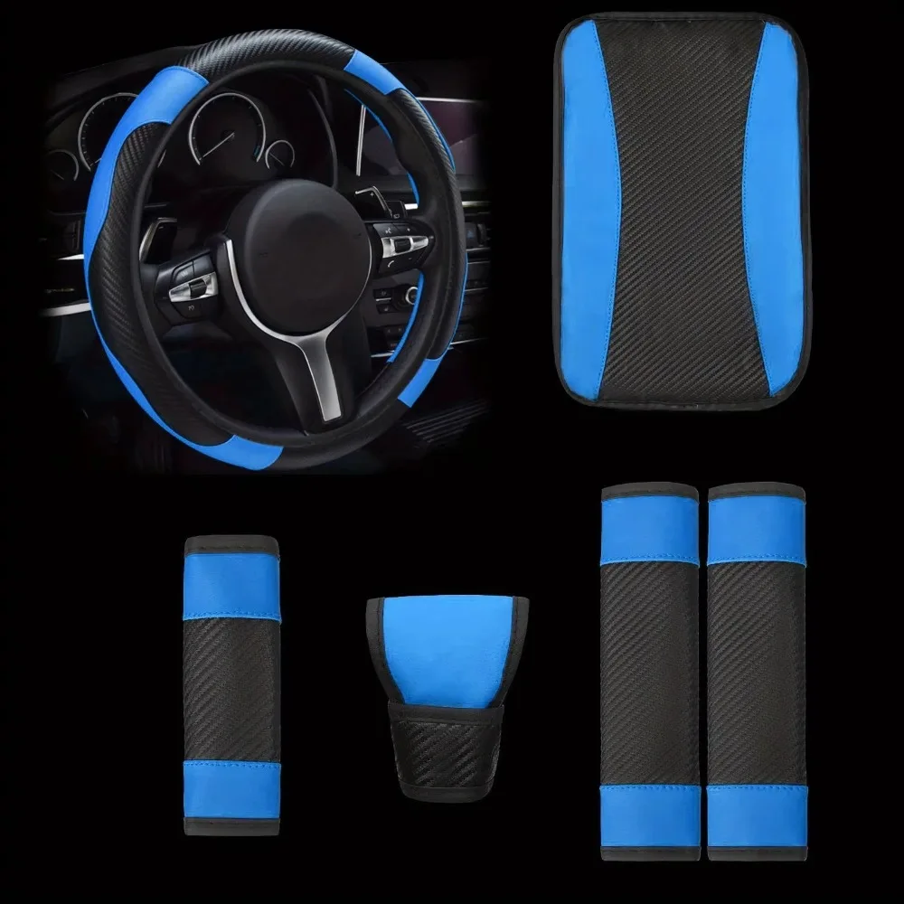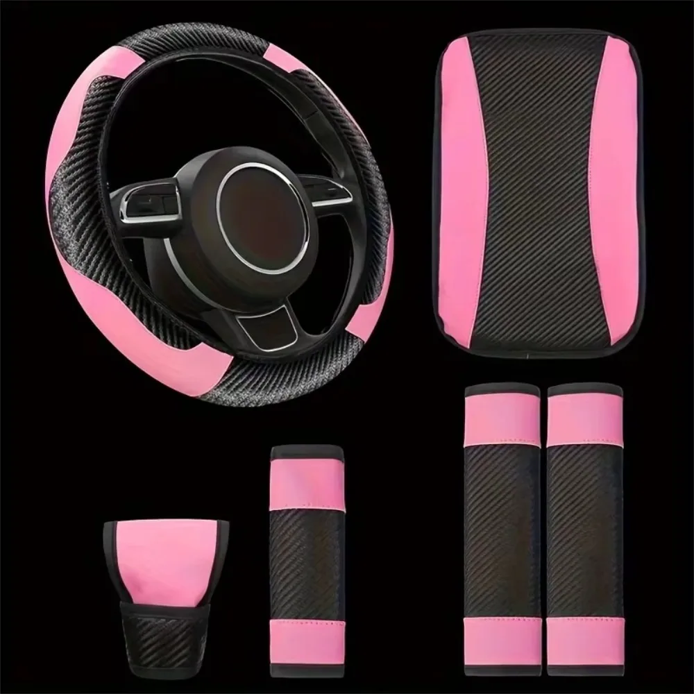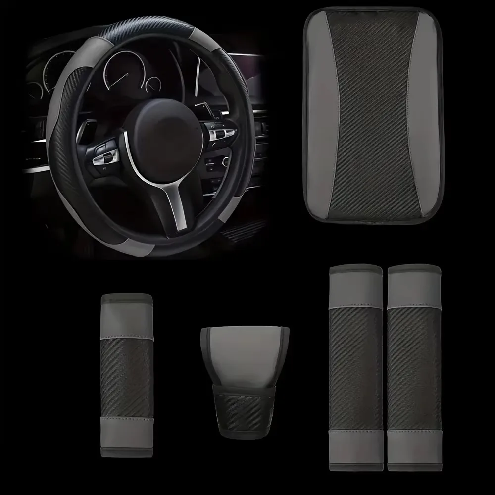6PC PU Leather Luxury Steering Wheel Cover Safety Shoulder Cover Armrest Pad Handbrake Sleeve for Car Interior Accessories