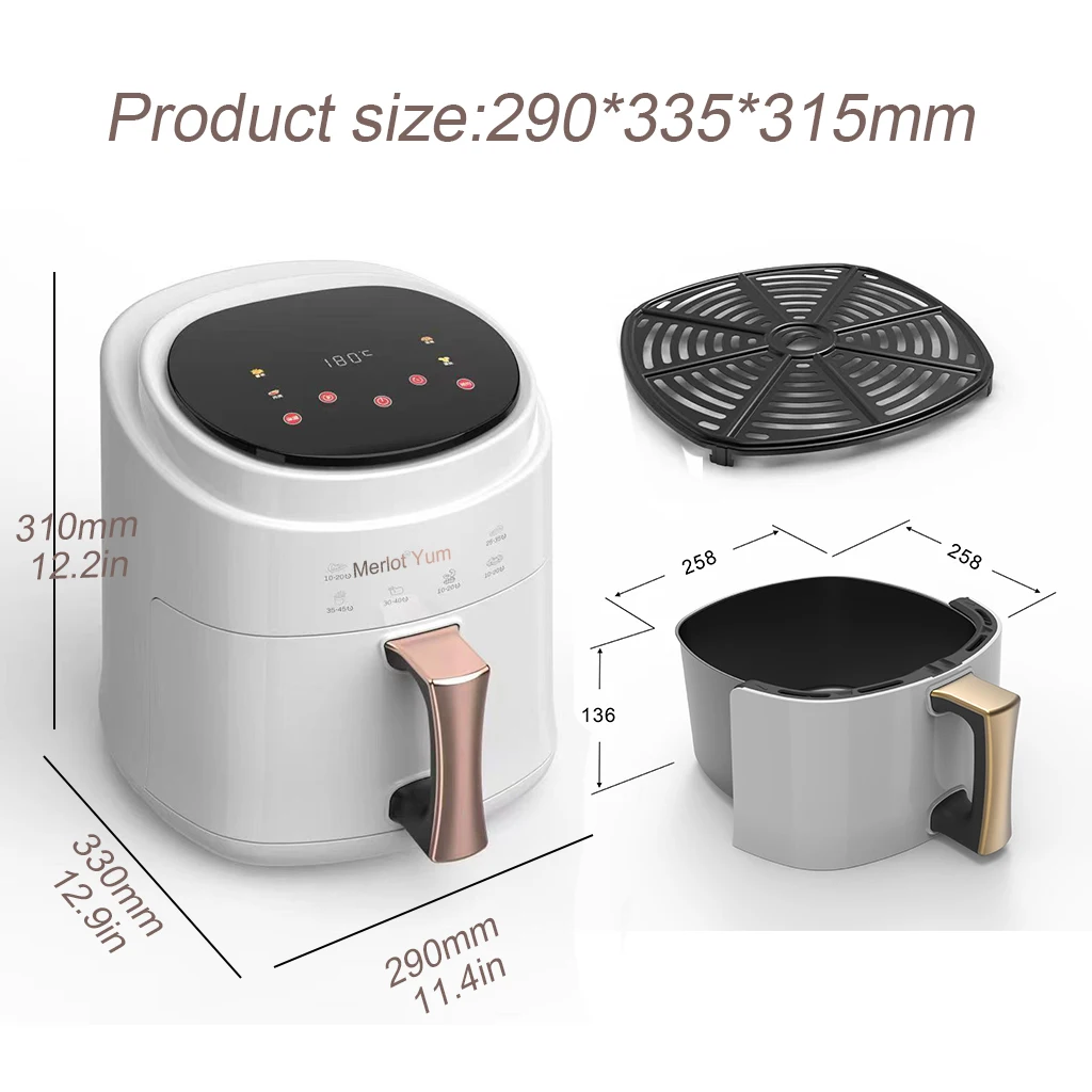 White Color 1L 2.5L 3L 3.5L 4L 5L 6L 7L 8L 12L Multi-function Smart air Fryers