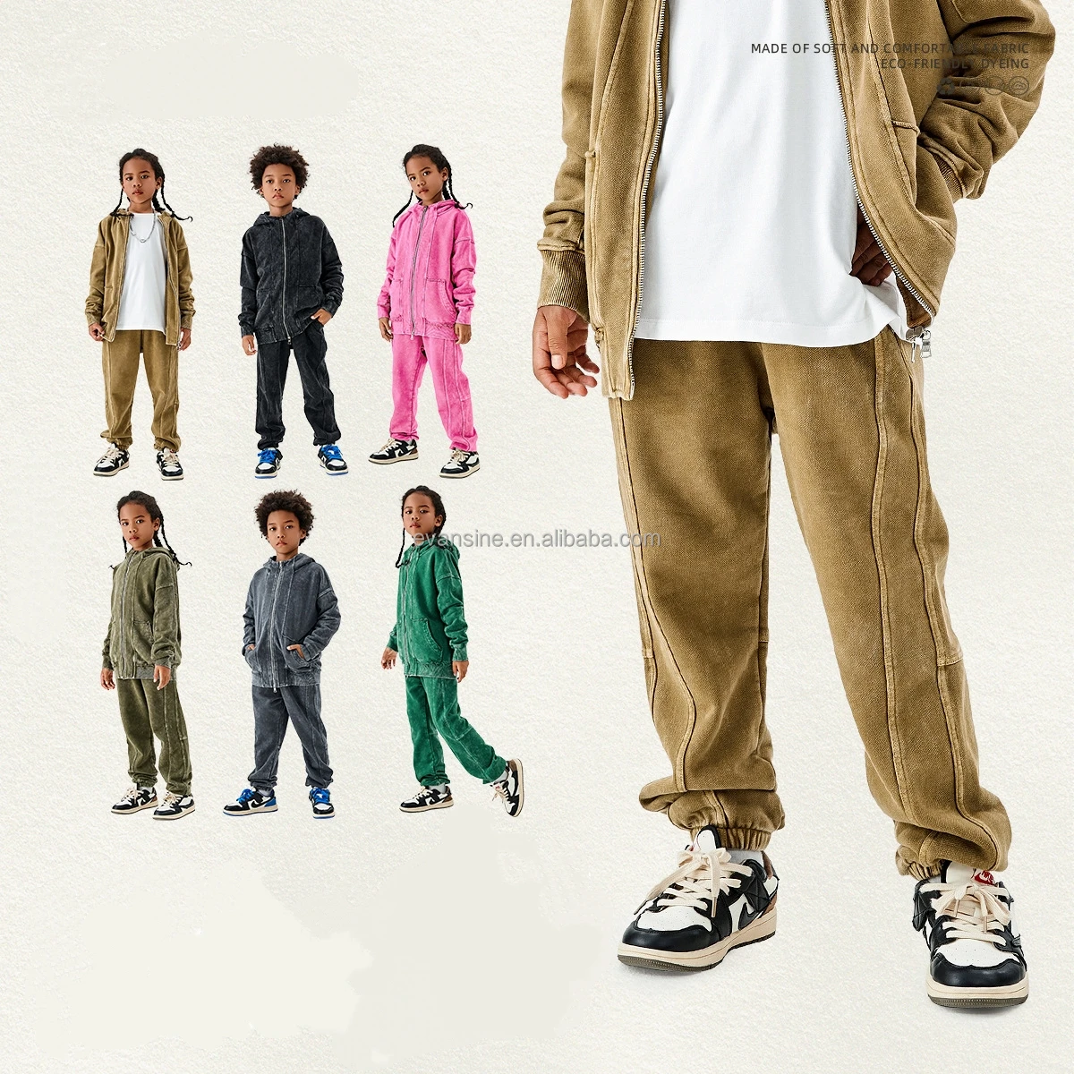 Customizable Kids Apparel 350g Pants Eco Friendly Dyeing Soft Fabric Distressed Spliced Joggers Boys Girls