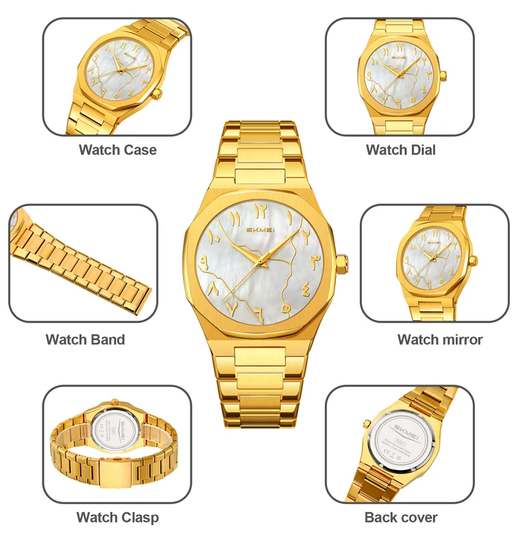 SKMEI 9391 New Arabic Men's Quartz Watch Luxury Wrist Fashion Watches Waterproof Business Stainless Steel Wristwatches