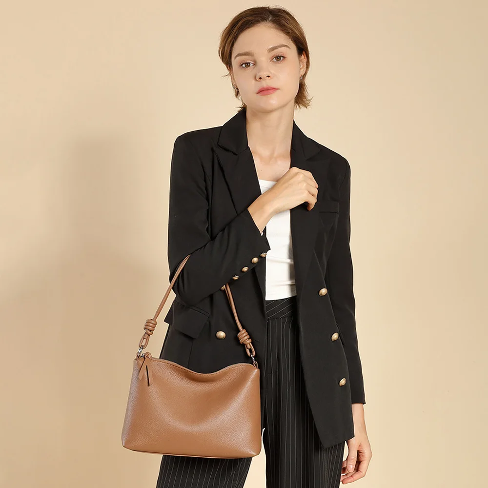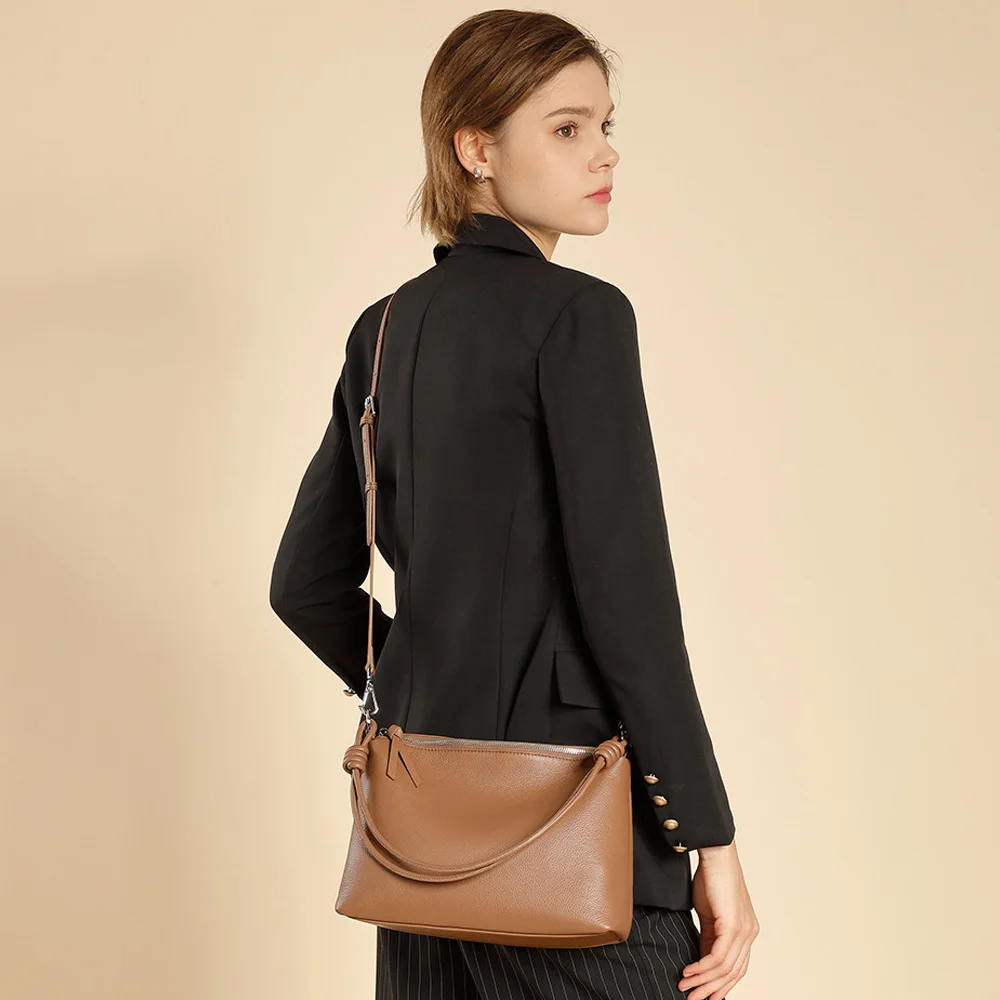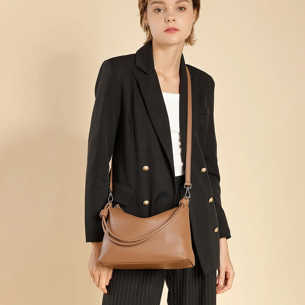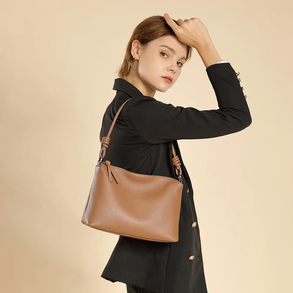 Women's Cowhide Underarm Tote Bag Large-Capacity Zip Closure Simple Work Clothing Crossbody Design Single Autumn