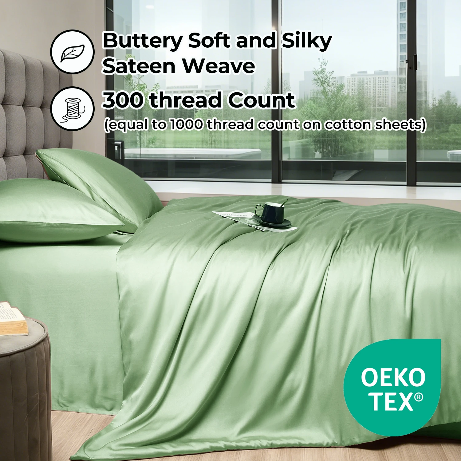 100% Bamboo Fiber Woven King Size 300tc 3-Piece Modern All-Season Duvet Cover Set with Flat Sheet Fitted Sheet and Pillowcases