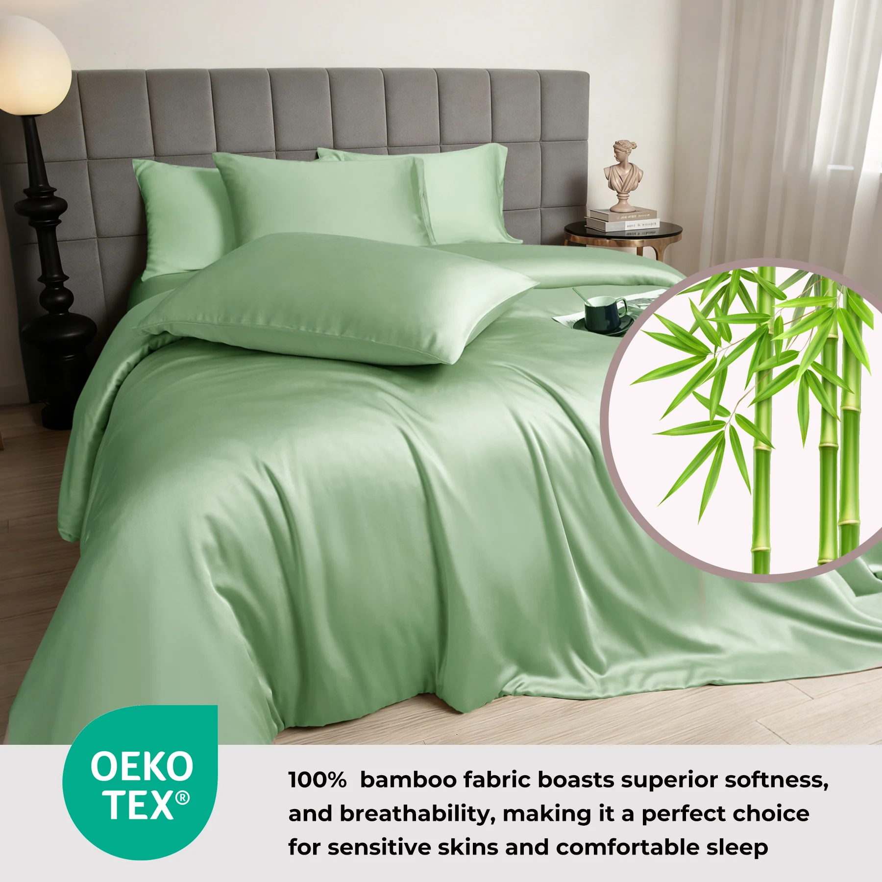 100% Bamboo Fiber Woven Modern Solid Color Bedding Set Super King Size Includes Flat Bed Sheet Fitted Duvet Cover