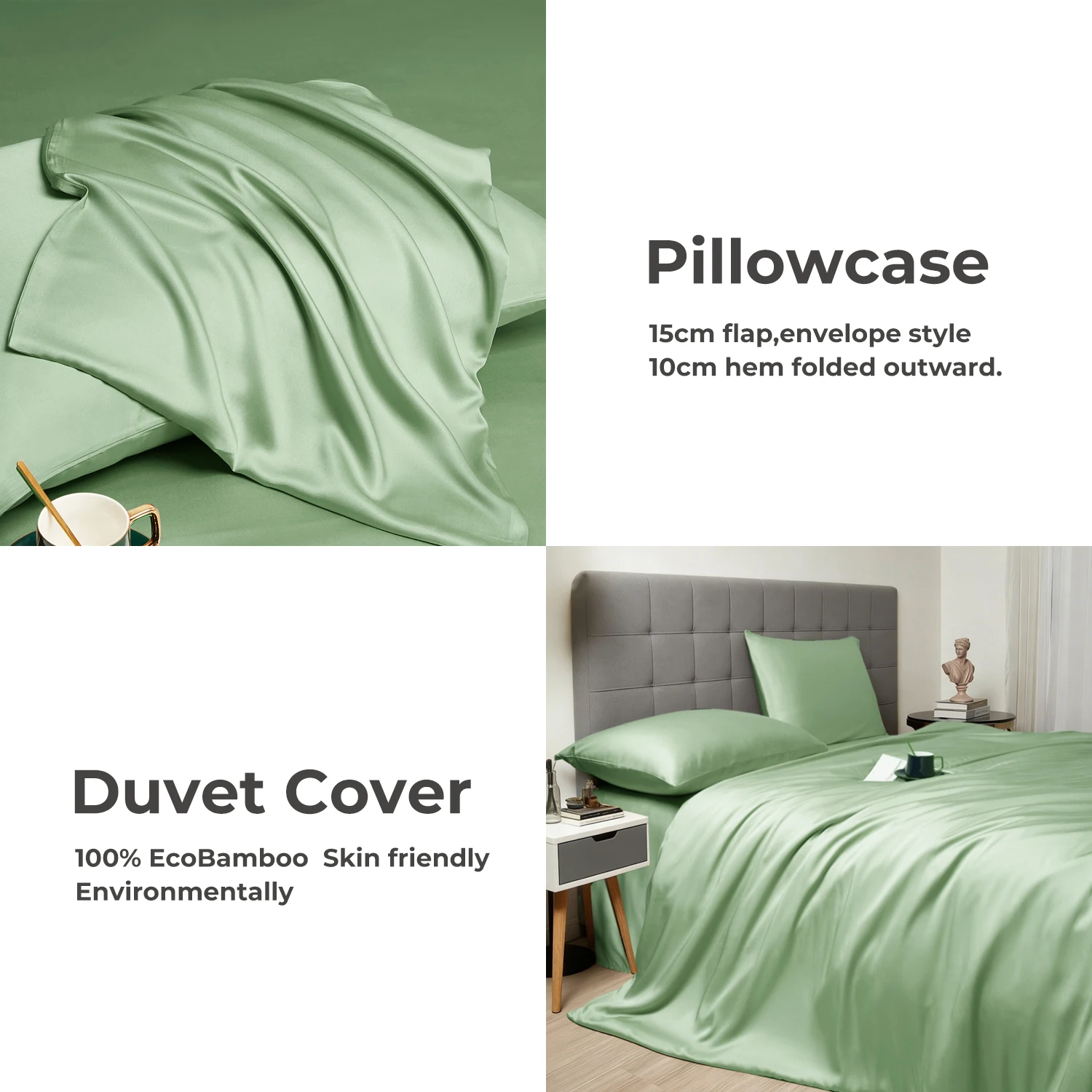 100% Bamboo Fiber Woven Modern Solid Color Bedding Set Super King Size Includes Flat Bed Sheet Fitted Duvet Cover