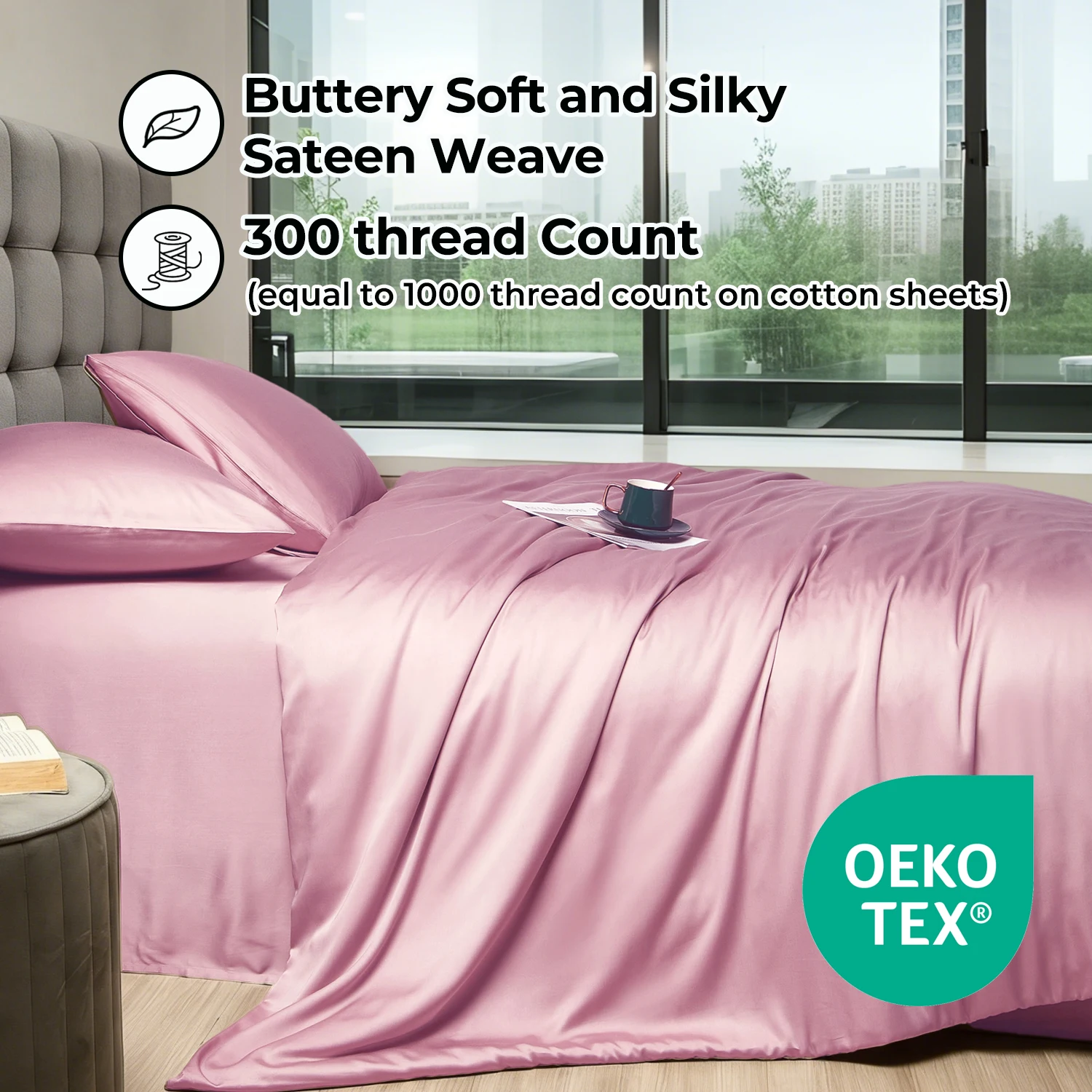 100% Bamboo Woven Modern Solid Color Bedding Set Flat Sheet Fitted Sheet Pillowcases 300tc Thread Count Wedding Four-piece Kit