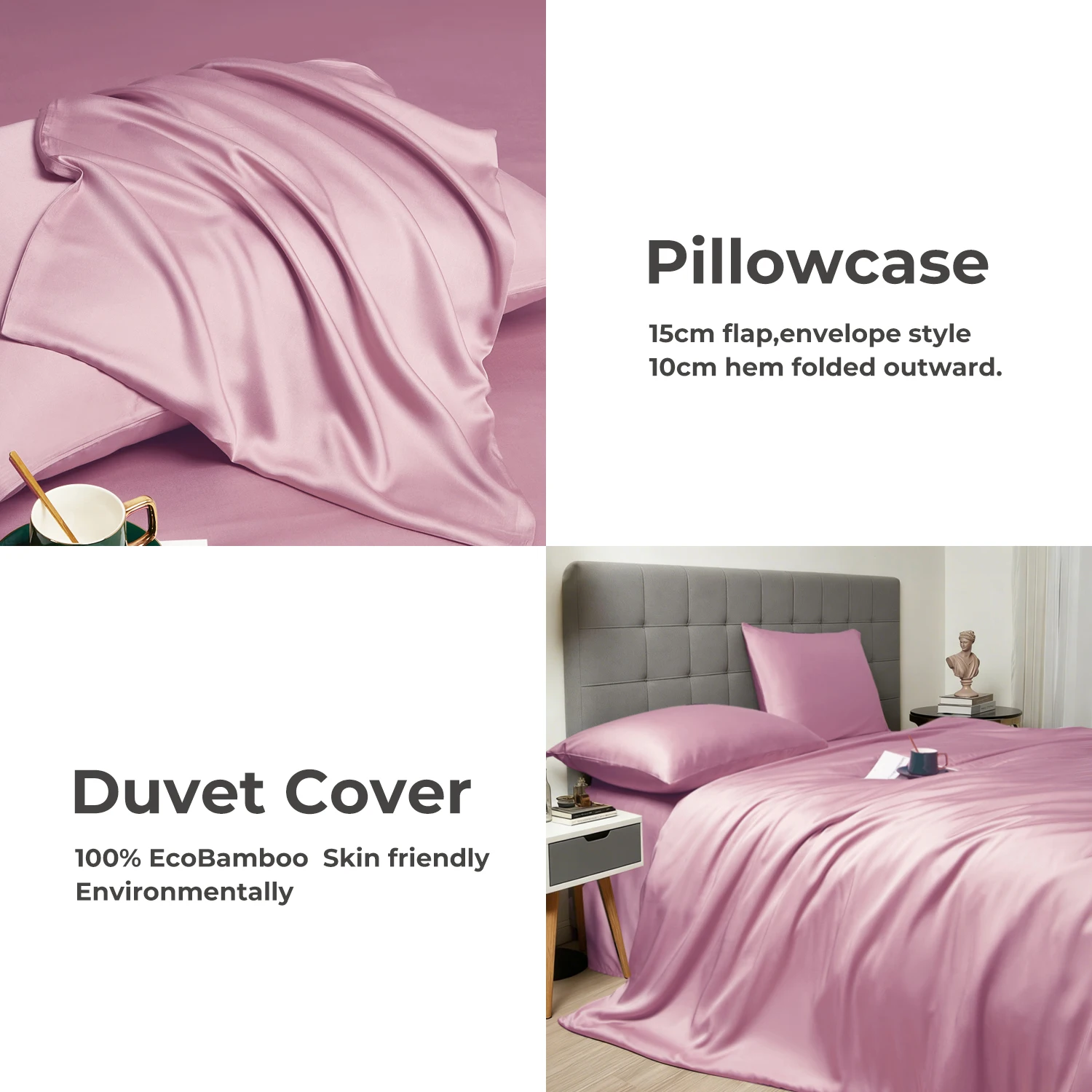 100% Bamboo Fiber Woven Modern Solid Color Bedding Set Super King Size Includes Flat Bed Sheet Fitted Duvet Cover