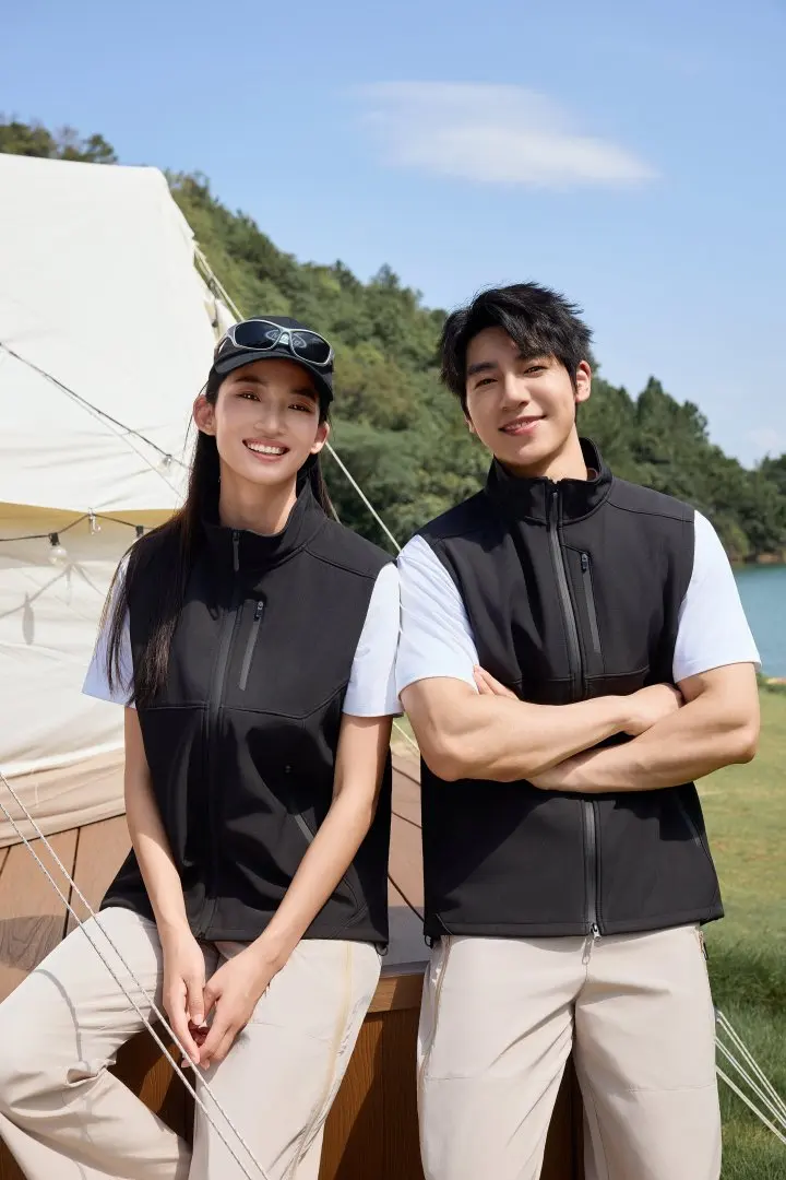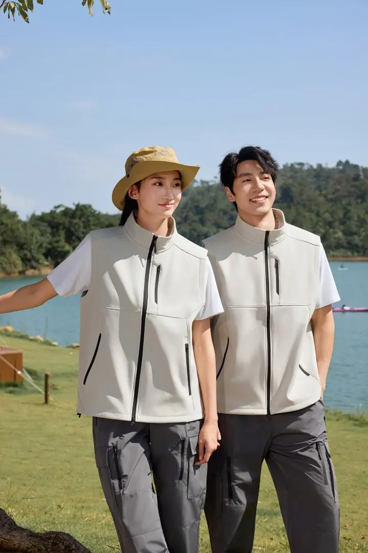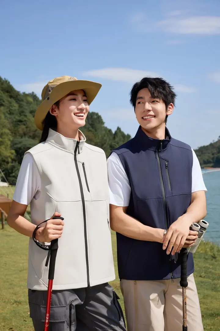 Custom Winter Softshell Vest Men Windproof Lightweight Outdoor Hiking Utility Gilet Zipper Pockets Functional Sleeveless Safari