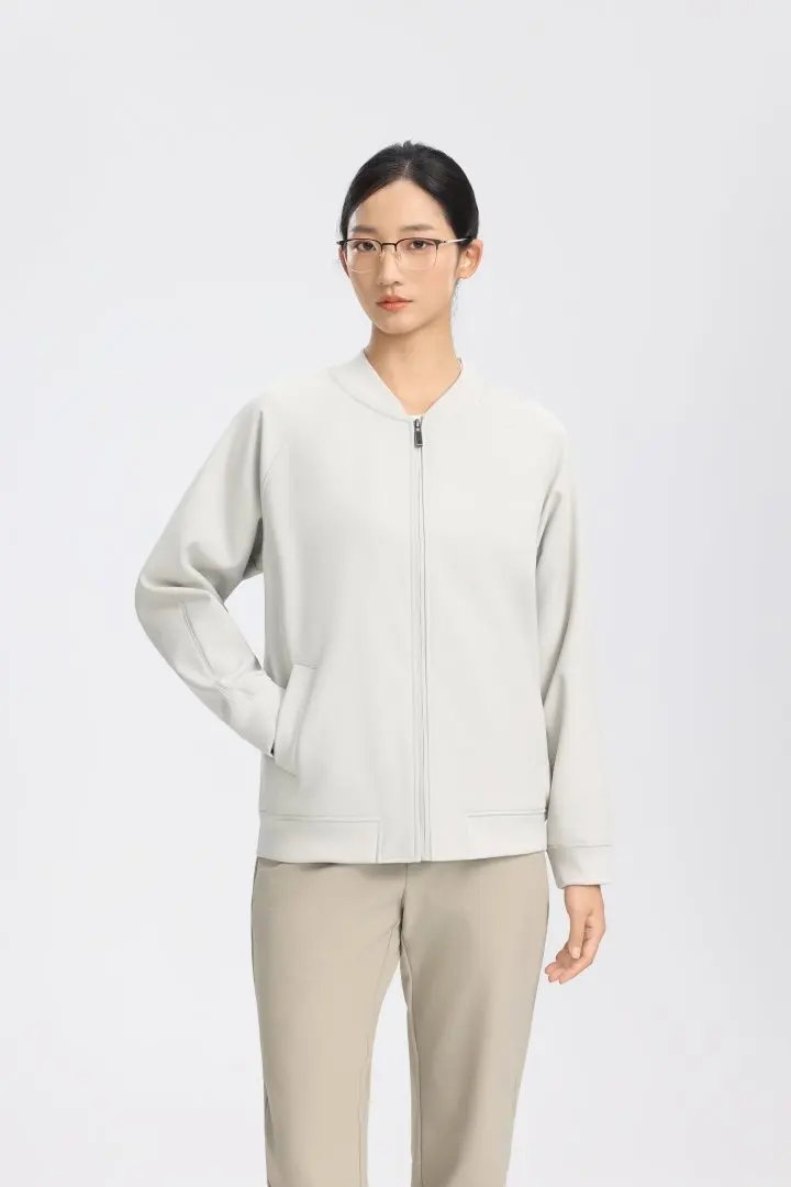 Professional Women's White Long-sleeved Crew Neck with Button-down Detailing, Suitable for Commuting and Formal Work Wear