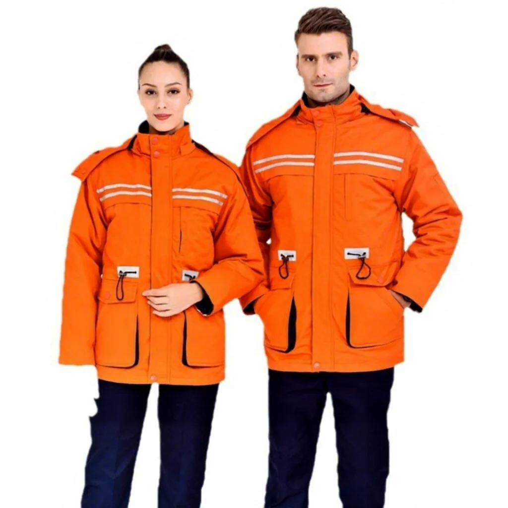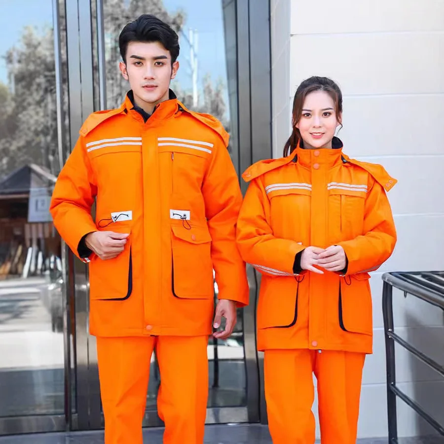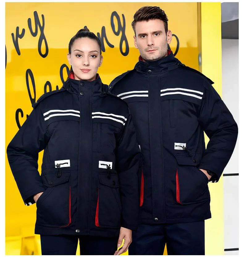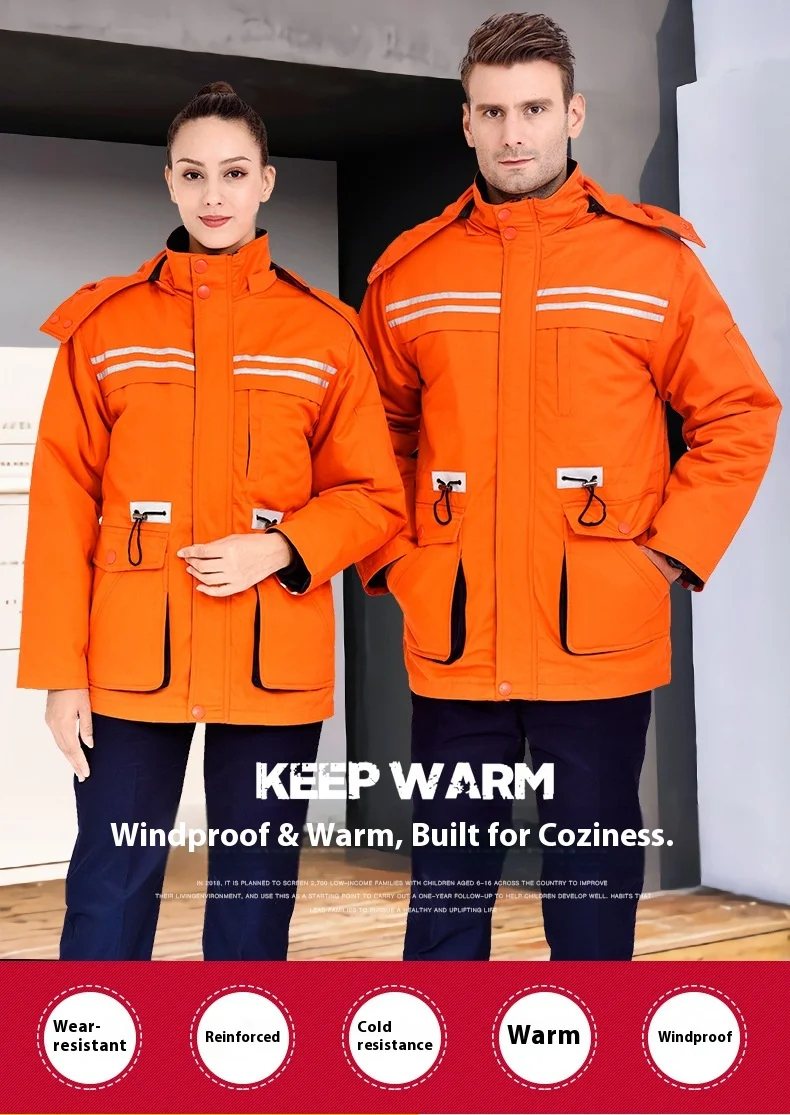Men's Women's Detachable Cotton-Padded Winter Coat Breathable Reflective Strip Thickened Lengthened Design Cold-Proof Workwear