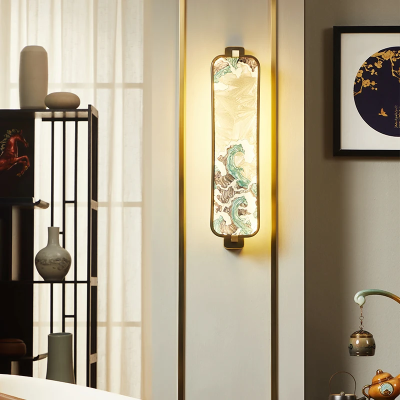 Enamel Colored New Chinese Style Bedroom Headboard Light Background Creative Wall Lamp Bedside Lamp Long Living Room Wall Lamp